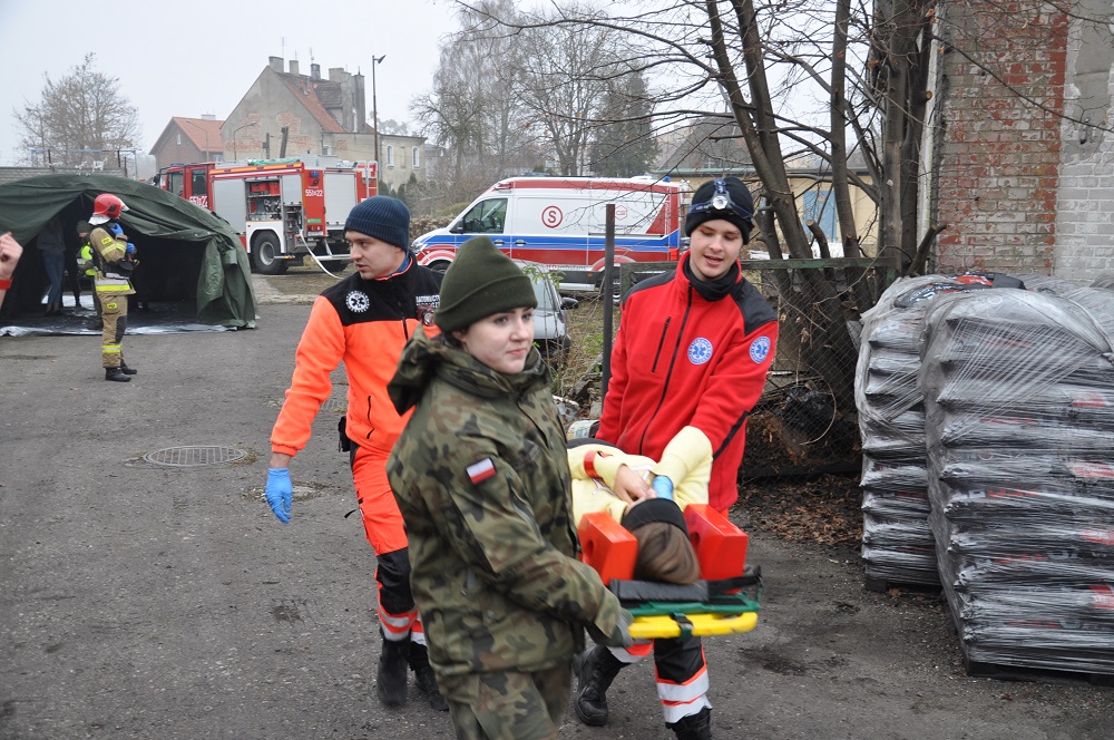 We współpracy z kierownikiem Katedry Ratownictwa Medycznego dr Pawłem Jastrzębskim kadra komendy zorganizowała wspólne ćwiczenia w ramach prowadzenia działań ratunkowych przy dużej liczbie osób poszkodowanych. Scenariusz ćwiczeń obejmował przeprowadzenie działań ratowniczo-gaśniczych w budynku byłej Rzeźni w Szczytnie, w którym podczas dyskoteki doszło do rozszczelnienia butli z gazem i jej wybuchu. W następstwie wybuchu uczestnicy koncertu doznali wielu obrażeń typowych dla tego typu zdarzenia. W pomieszczeniu wybucha panika, kilka osób upada z antresoli na parkiet znajdujący się na parterze budynku, część osób bez obrażeń ewakuuje się z obiektu, a osoby poszkodowane pozostają w pomieszczeniach dyskoteki.