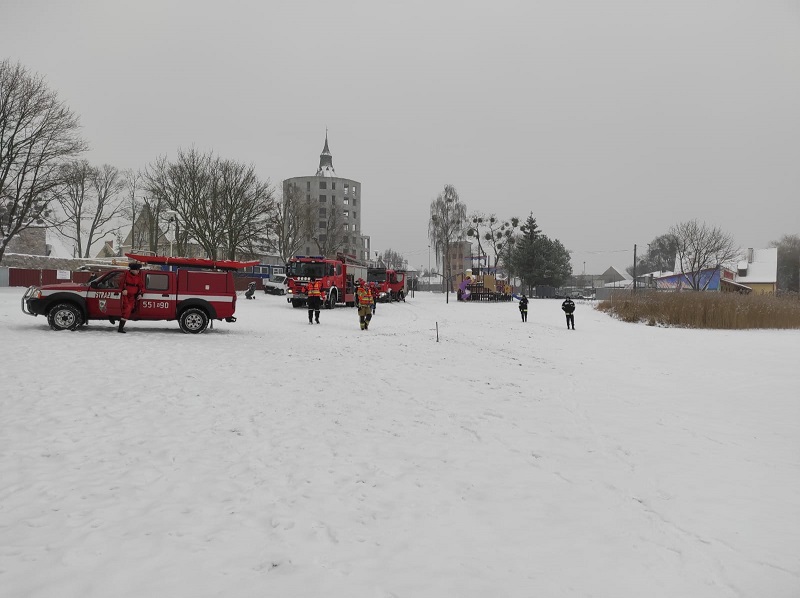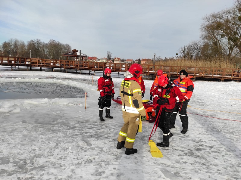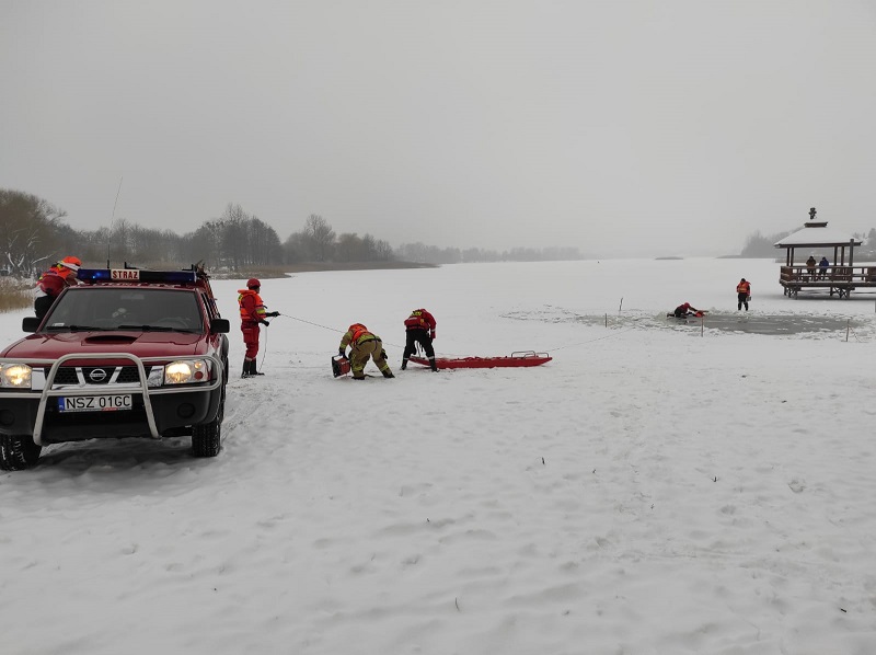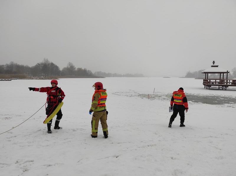 Ćwiczenia dowódcy jednostki ratowniczo-gaśniczej na zamarzniętym akwenie