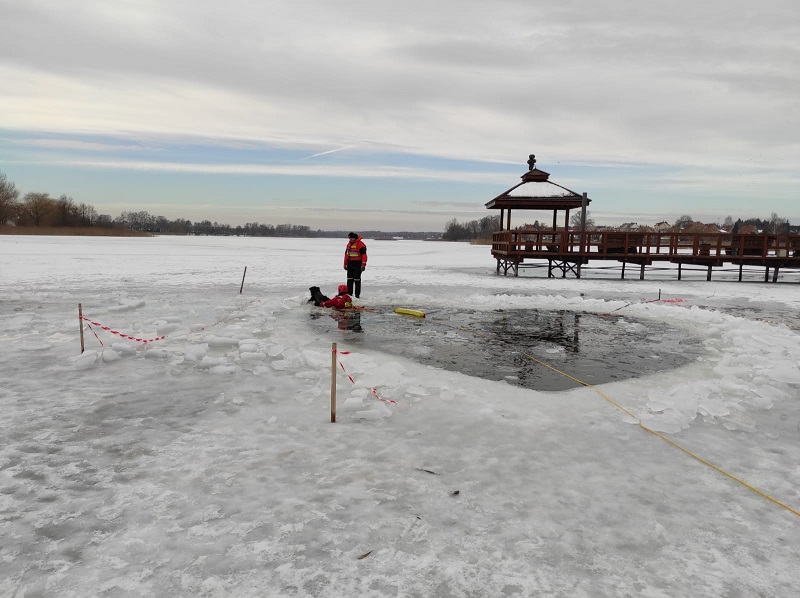 - Pamiętaj! Najważniejsze jest własne bezpieczeństwo. Jeśli lód załamał się pod osobą poszkodowaną, może załamać się również pod Tobą. Dlatego tak ważne jest wezwanie pomocy profesjonalistów. Ratownik bez odpowiedniego zabezpieczenia może przebywać w zimnej wodzie krótko. Po 3. minutach dochodzi do wyziębienia organizmu.