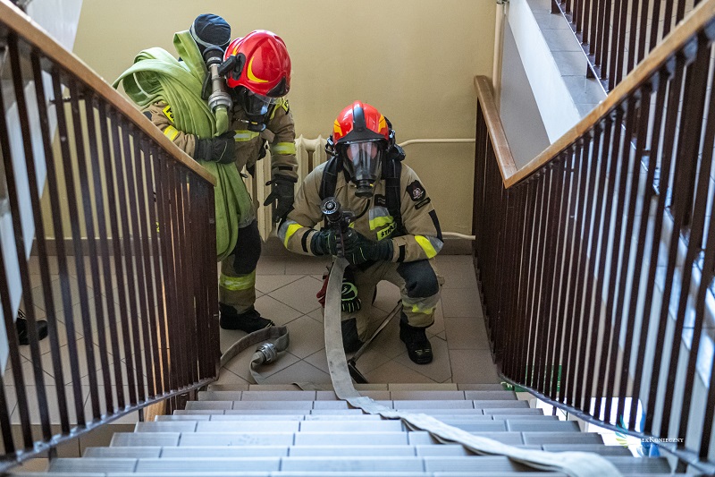 Scenariusz zakładał, iż podczas zajęć w salach edukacyjnych znajdujących się w akademiku WSPol w Szczytnie zostaje zaprószony ogień, który przedostaje się na materiały palne, powodując pożar. Pożar rozwija się bardzo intensywnie, tak że cała sala zostaje zadymiona w krótkim czasie. Osoby uczestniczące w zajęciach ewakuują się z sali. Podczas ewakuacji jedna z osób przewraca się i nie opuszcza pomieszczenia. Z uwagi na intensywny proces spalania osoby postronne nie są w stanie wejść do pomieszczenia. W międzyczasie o zdarzeniu poinformowane zostają służby ratunkowe. Po dojeździe na miejsce zdarzenia zastępów okazuje się, że poszkodowany nadal przebywa w pomieszczeniu. Akcja polega na sprawieniu sprzętu, zabezpieczeniu ratowników, przeprowadzeniu działań ratowniczo-gaśniczych, ewakuacji poszkodowanego oraz udzieleniu mu kpp.