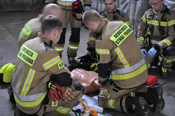 Ćwiczenia odbyły się w Szczytnie na terenie zakładu Safilin,. Celem ćwiczeń było doskonalenie technik gaszenia pożarów, prowadzenia działań z dziedzin ratownictwa technicznego oraz ratownictwa medycznego. W ćwiczeniach wzięło udział 8 jednostek Ochotniczych Straży Pożarnych z terenu powiatu szczycieńskiego, dodatkowo w ćwiczeniach wzięła udział Jednostka Ratowniczo-Gaśnicza PSP w Szczytnie. Instruktorzy pod bacznym okiem kierownictwa komendy, przeprowadzili 4 epizody warsztatowe dla jednostek ochrony przeciwpożarowej oraz epizod dla pracowników zakładu. W pierwszym epizodzie strażacy doskonalili umiejętności udzielania kwalifikowanej pierwszej pomocy w nagłym zatrzymaniu krążenia z wykorzystaniem AED, stosowanie stazy taktycznej w przypadku masywnych krwotoków. Kolejnym epizodem były działania ratownictwa technicznego, każda z ćwiczących grup miała za zadanie uwolnić osobę poszkodowaną przy użyciu sprzętu hydraulicznego. Trzecie stanowisko do ćwiczeń wymagało użycia sprzętu ochrony dróg oddechowych, ratownicy wyposażeni w linię gaśniczą, w pełnym zabezpieczeniu w zadymionym pomieszczeniu musieli odnaleźć osobę poszkodowaną i ewakuować ją w miejsce bezpieczne. Czwarty epizod realizowany na placu zakładu z wykorzystaniem zbiorników wodnych, z których zassano wodę, następnie zastępy ćwiczyły rozwinięcia linii. Na ostatnim stanowisku instruktorzy przedstawili pracownikom zakładu sposoby zabezpieczania wycieków substancji ropopochodnych oraz techniki użycia gaśnic proszkowych. Co bardzo ważne pracownicy czynnie uczestniczyli w ćwiczeniach, co będzie miało przełożenie na działania w razie realnego zagrożenia. W ćwiczeniach jednym z głównych założeń było żeby stworzyć warunki najbardziej zbliżone do rzeczywistych. Warsztaty wniosły bardzo wiele do wyszkolenia i szlifowania umiejętności przydatnych w akcjach ratowniczo-gaśniczych, nabyte umiejętności z pewnością wpłyną na poprawę poziomu bezpieczeństwa w powiecie szczycieńskim. Bardzo dziękujemy dyrekcji zakładu za możliwość zorganizowania ćwiczeń natomiast jednostkom biorącym udział w warsztatach za zaangażowanie.