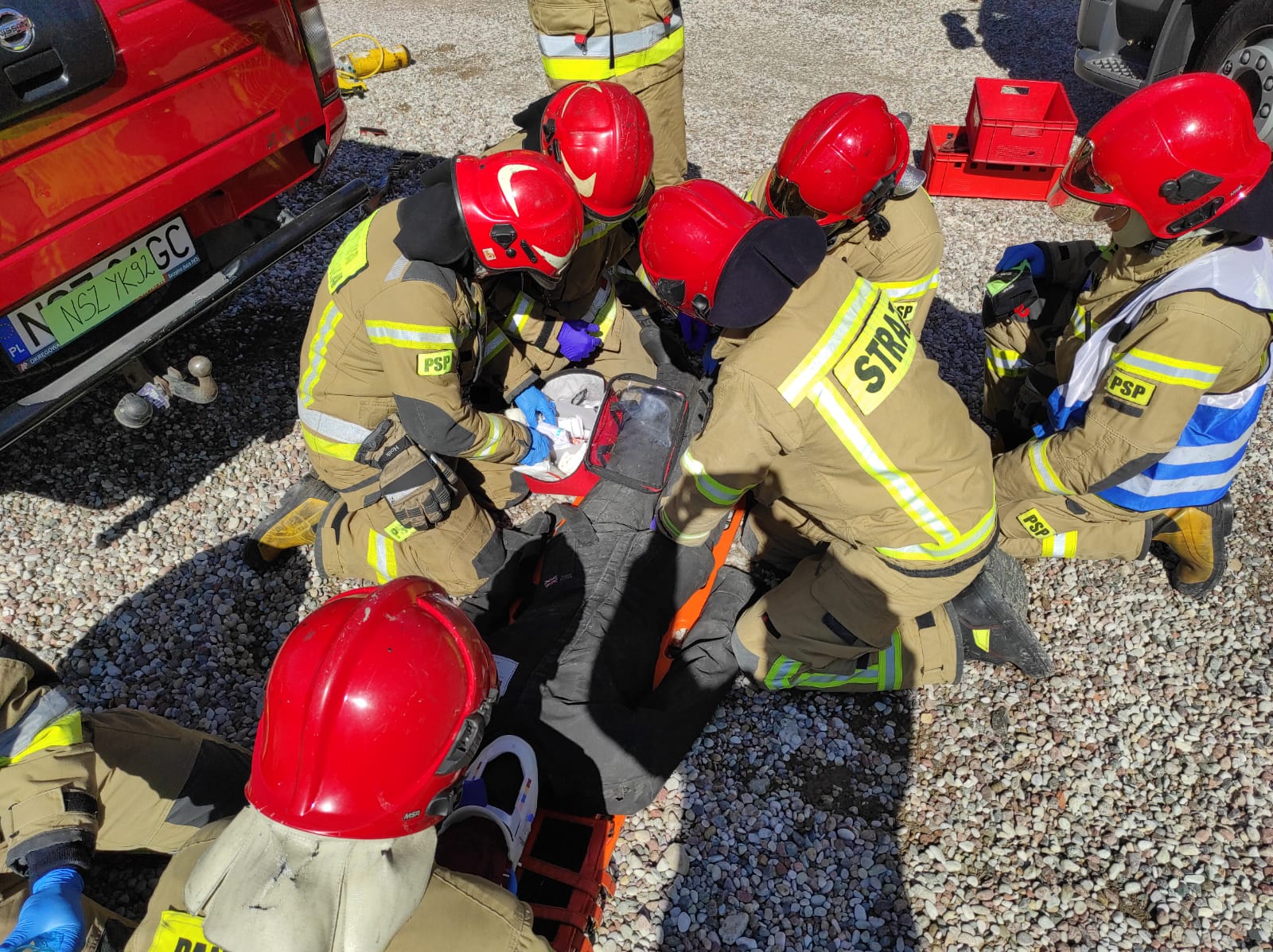 Scenariusz zakładał, iż podczas wyjazdu z placu manewrowego elektryczny samochód osobowy potrąca ogrodnika. W wyniku zdarzenia poszkodowany znajduje się pod pojazdem, ze miażdżoną kończyną dolną. Kierowca samochodu powiadamia o zdarzeniu służby ratunkowe. Po dojeździe na miejsce zdarzenia zastępów okazuje się, że poszkodowany nadal przebywa pod pojazdem, jest przytomny i kontaktowy. Akcja polega na sprawieniu sprzętu, zabezpieczeniu ratowników, przeprowadzeniu działań ratowniczo-gaśniczych, ewakuacji poszkodowanego oraz udzieleniu mu kpp.