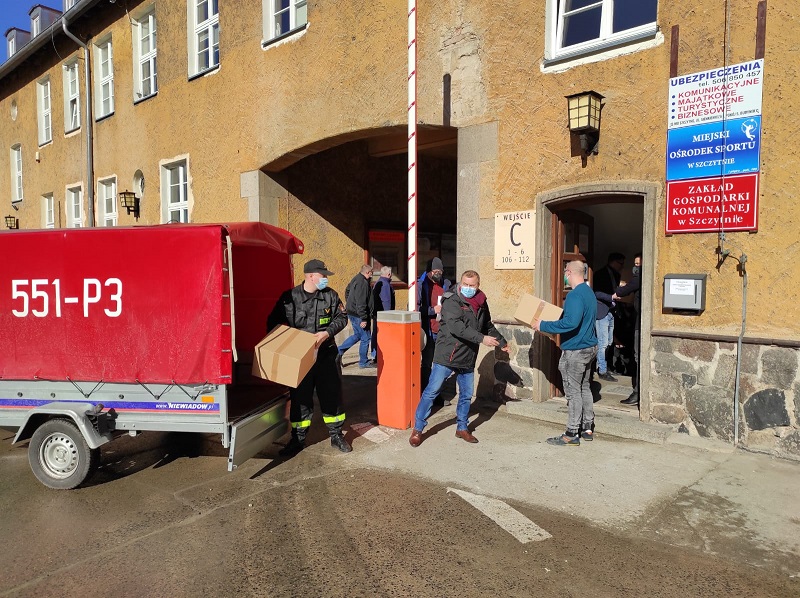 6 marca 2021 r. do Komendy Powiatowej PSP w Szczytnie, dostarczono 297 tyś maseczek. 8 marca szczycieńscy strażacy zgodnie z przydziałem rozwieźli maseczki do odpowiednich urzędów gmin powiatu szczycieńskiego. Na mocy decyzji rządu maseczki zostaną rozdysponowane przez samorządy dla wszystkich obywateli.