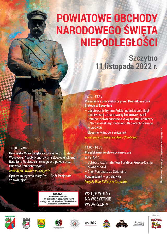 W celu uczczenia kolejnej, 104 rocznicy odzyskania przez Polskę Niepodległości, 11 listopada podczas powiatowych obchodów Narodowego Święta Niepodległości zostanie wspólnie odśpiewany hymn państwowy. Komenda Powiatowa PSP w Szczytnie serdecznie zaprasza do udziału w obchodach i tym samym udziału w akcji „Niepodległa do hymnu”. Więcej informacji o przebiegu obchodów oraz o akcji „Niepodległa do hymnu” pod linkami:
