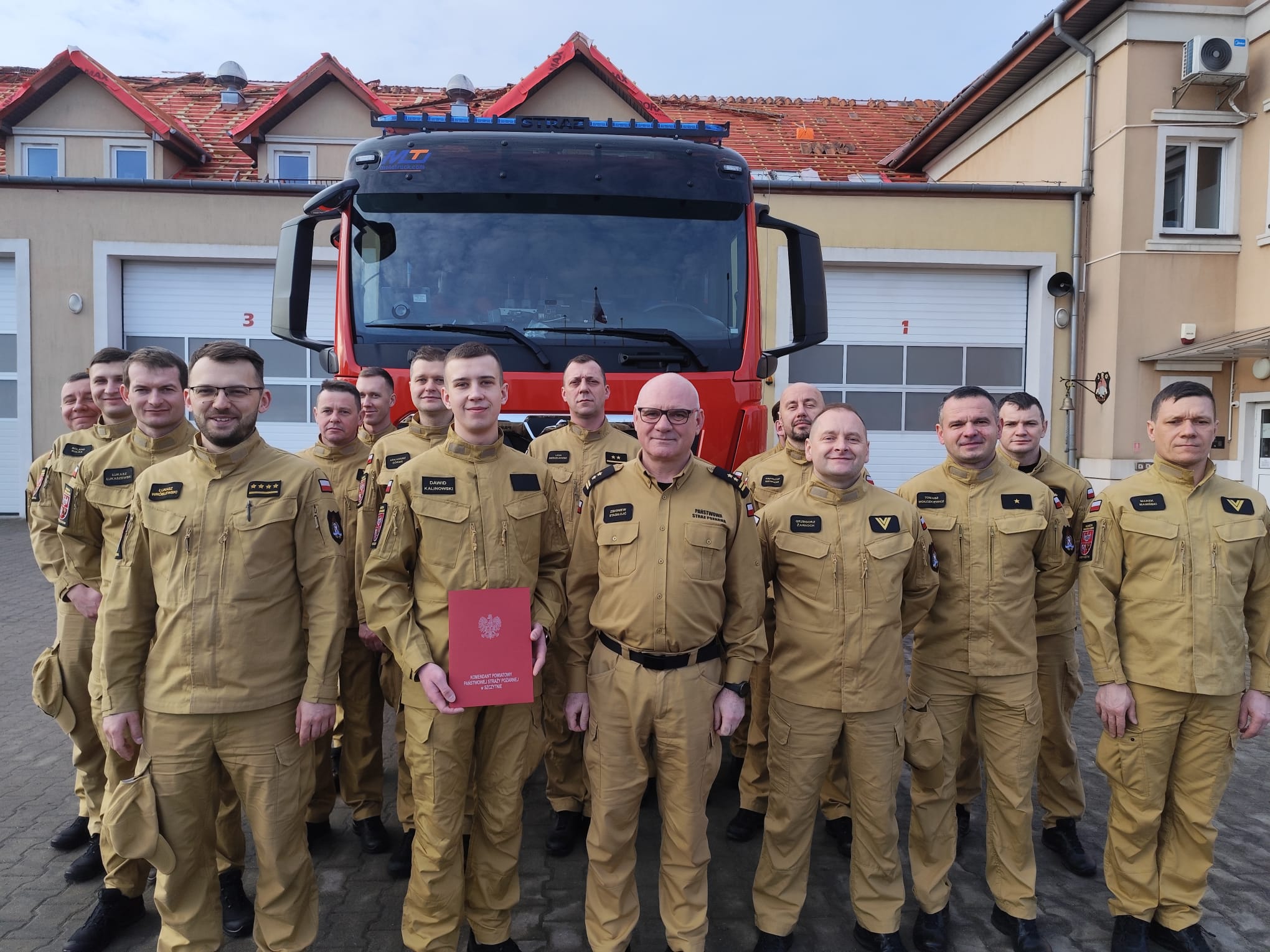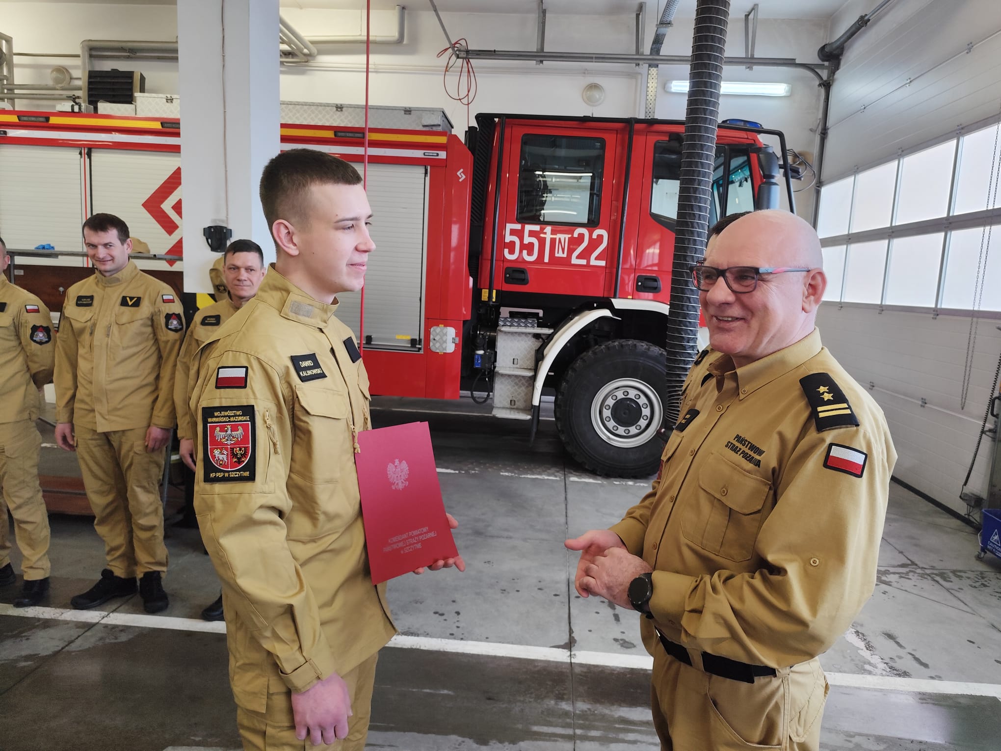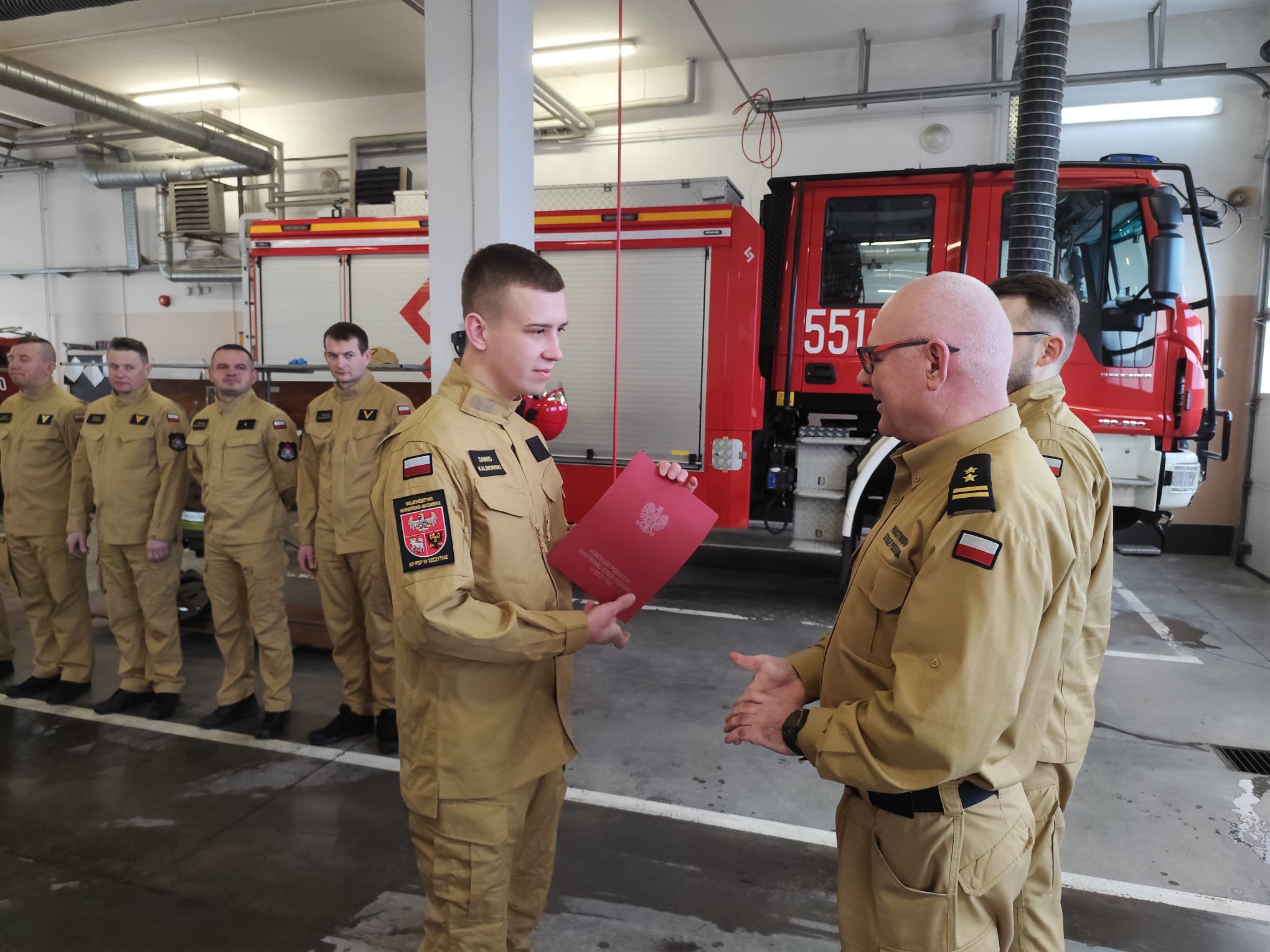 Z dniem 1 marca br. w szeregi Komenda Powiatowa Państwowej Straży Pożarnej w Szczytnie został przyjęty nowy funkcjonariusz – str. Dawid Kalinowski, który docelowo będzie pełnił służbę w Jednostce Ratowniczo-Gaśniczej. Podczas zmiany służbowej Komendant Powiatowy PSP w Szczytnie bryg. Zbigniew Stasiłojć oficjalnie przywitał str. Dawida Kalinowskiego.