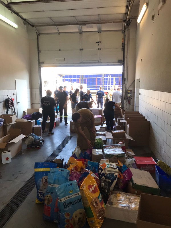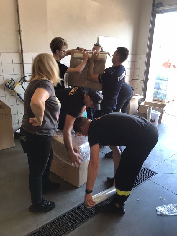 Na terenie Komendy Powiatowej Państwowej Straży Pożarnej w Szczytnie miało miejsce sortowanie i przeładowanie darów z miasta i gminy Pasym, gminy Jedwabno, gminy Świętajno oraz Miejskiego Domu Kultury w Szczytnie. Przyjmowanie transportów z punktów zbiórek rozpoczęło się od godz. 10.00. Wszystkie dary pakowano w kartony, zabezpieczono i ustawiono na palety, odpowiednio opisując je tematycznie żeby już na miejscu w Prudniku było łatwo rozdysponować pomoc. Pragniemy podziękować wszystkim, którzy wsparli tę akcję: