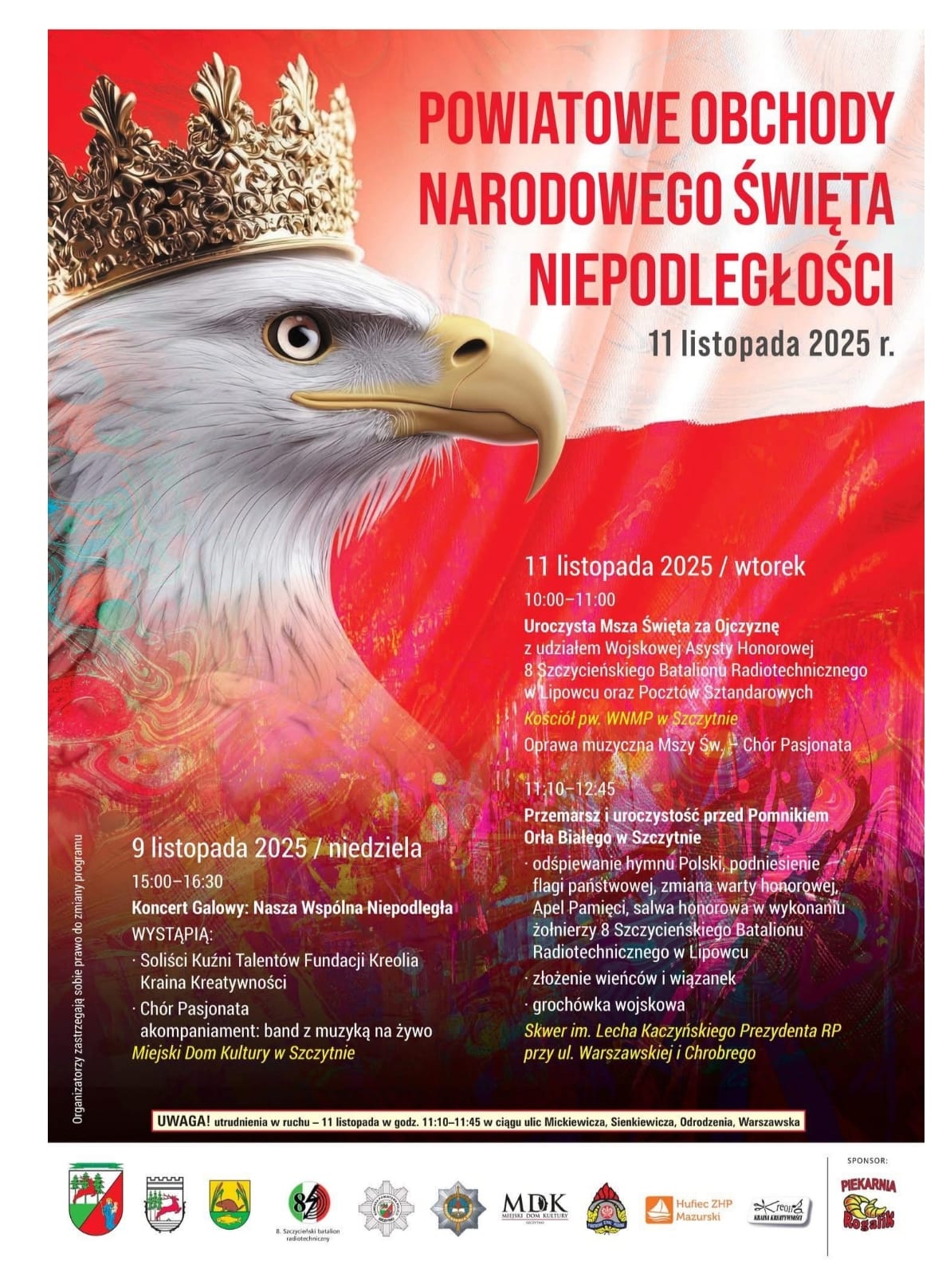 👨🚒 Strażacy z PSP w Szczytnie wezmą udział w lokalnych obchodach, które odbędą się 11 listopada 2025 r. w Szczytnie. W programie m.in.: