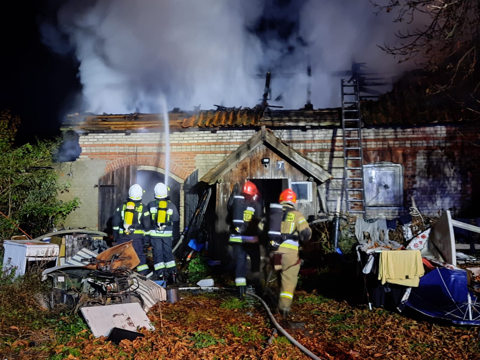 Po zakończeniu działań gaśniczych jeszcze raz sprawdzono miejsca objęte wcześnie pożarem. Potwierdzono, iż w pożarze nie ucierpieli mieszkańcy ani osoby postronne. Pomimo sprawnych działań ratowniczo-gaśniczych, w wyniku pożaru dach nad głową straciła 4 osobowa rodzina.