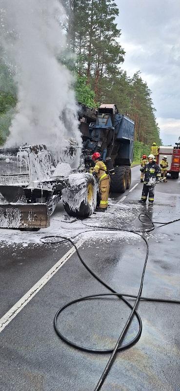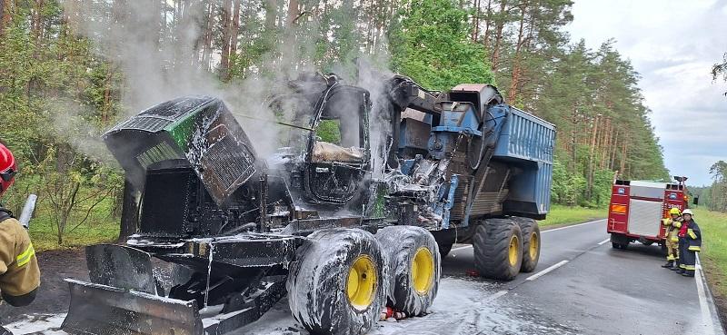 Pożar maszyny leśnej na DK 59 w miejscowości Rozogi