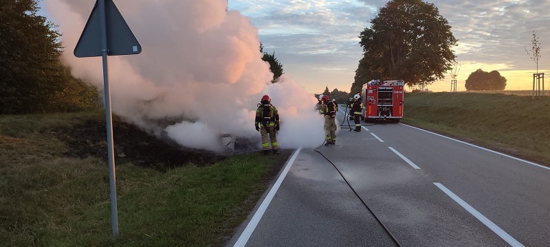 W dniu 05 sierpnia 2023 r. kilka minut po godzinie 5:00 dyżurny Stanowiska Kierowania Komendanta Powiatowego w Szczytnie otrzymał zgłoszenie o pożarze samochodu osobowego w miejscowości Linowo. Na miejsce zdarzenia zadysponował zastępy z JRG Szczytno oraz OSP Trelkowo.