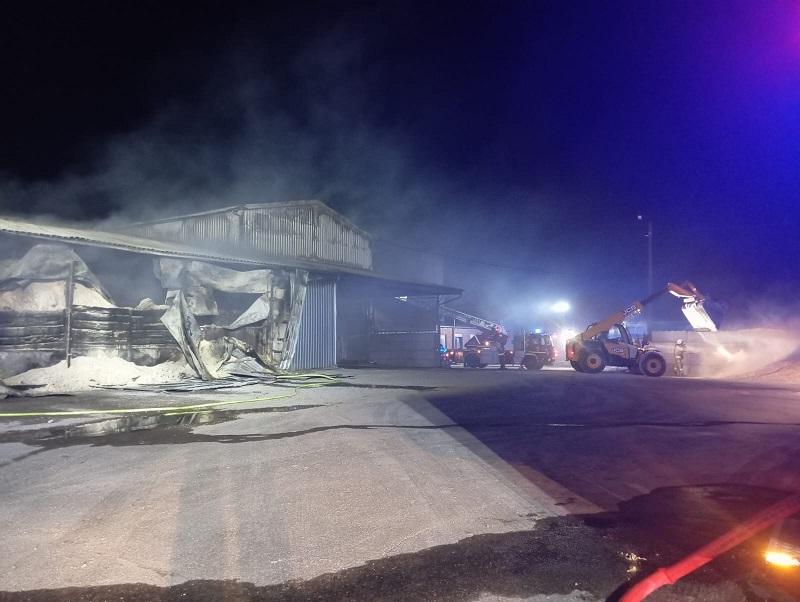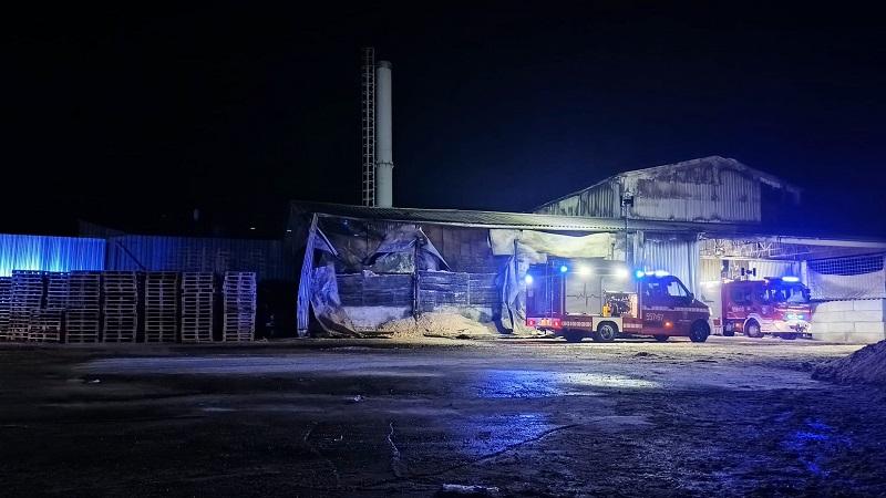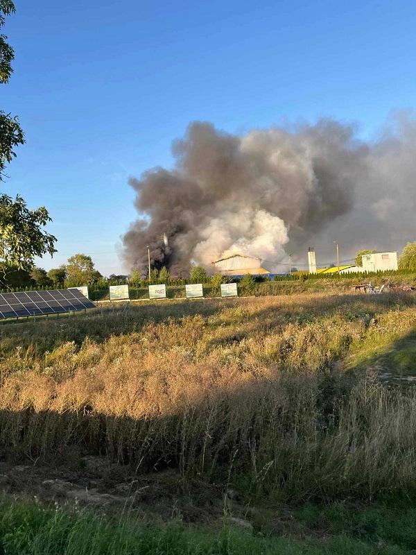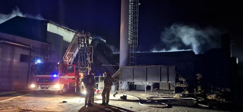 Pożar w zakładzie produkującym pellet w miejscowości Romany