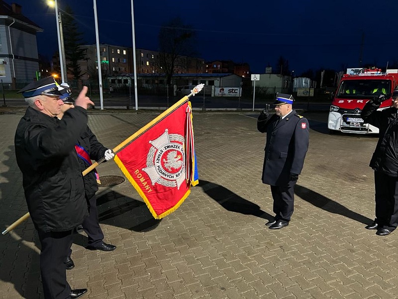 Po odczytaniu aktów przekazania samochodów pożarniczych nastąpiło ich poświęcenie, którego dokonał ks. Józef Midura - Kapelan Powiatowy Strażaków. Następnie uroczyście zostały wręczone kluczyki oraz akty przekazania dla druhów z OSP Romany i OSP Lipowiec. Ostatnim punktem uroczystej zbiórki były okolicznościowe przemówienia, po których nastąpiło złożenie meldunku Zastępcy Warmińsko-Mazurskiego Komendanta Wojewódzkiego PSP – Panu st. bryg. Adamowi Jastrzębskiemu.