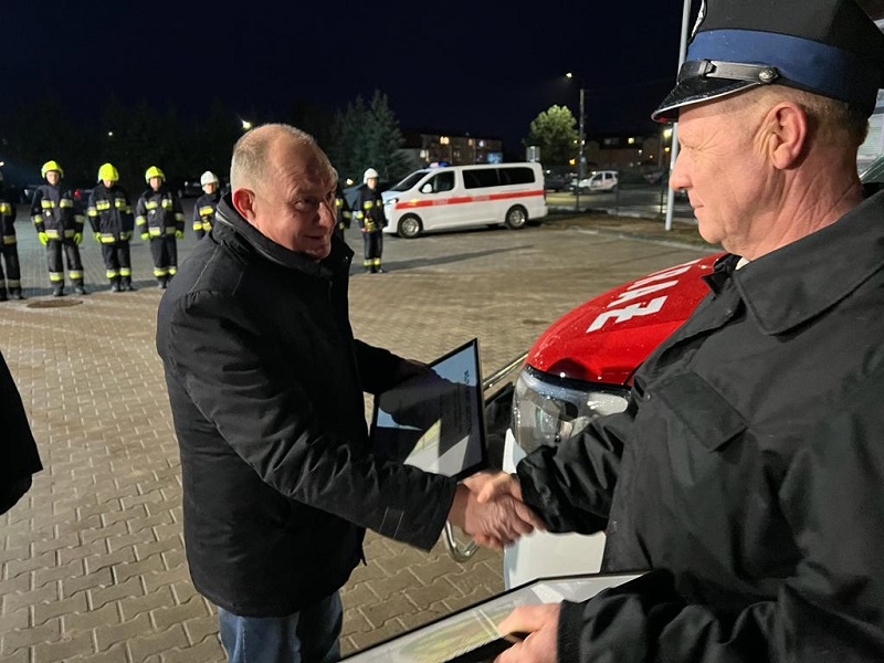 W dniu 20 grudnia 2023r. na terenie Urzędu Gminy Szczytno miało miejsce uroczyste przekazanie lekkich samochodów ratowniczo-gaśniczych marki Renault jednostkom Ochotniczych Straży Pożarnych w Romanach i Lipowcu.