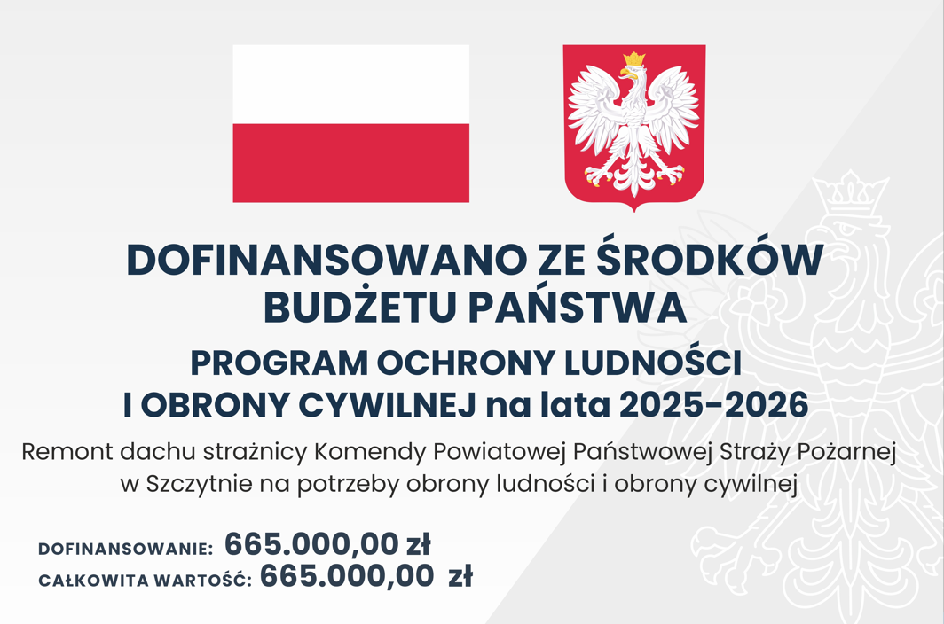Remont dachu strażnicy Komendy Powiatowej PSP w Szczytnie na potrzeby ochrony ludności i obrony cywilnej