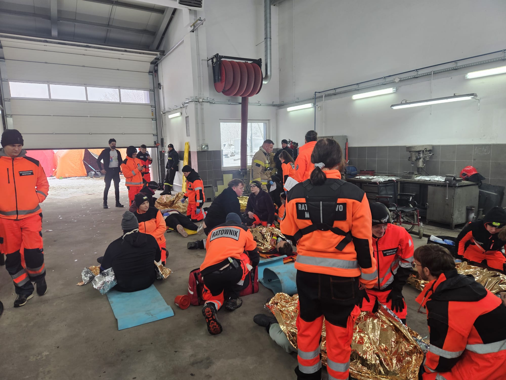 - wcielanie się w Zespoły Ratownictwa Medycznego, co pozwoliło przećwiczyć pełną ścieżkę udzielania pomocy — od segregacji, przez zaopatrzenie, po przekazanie poszkodowanych.