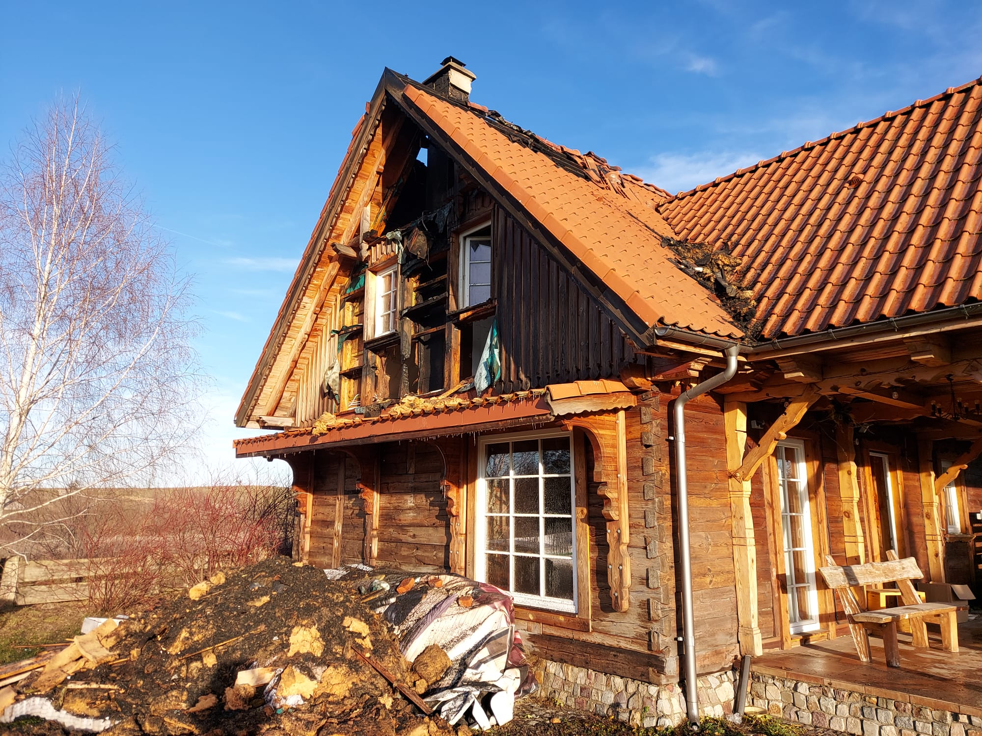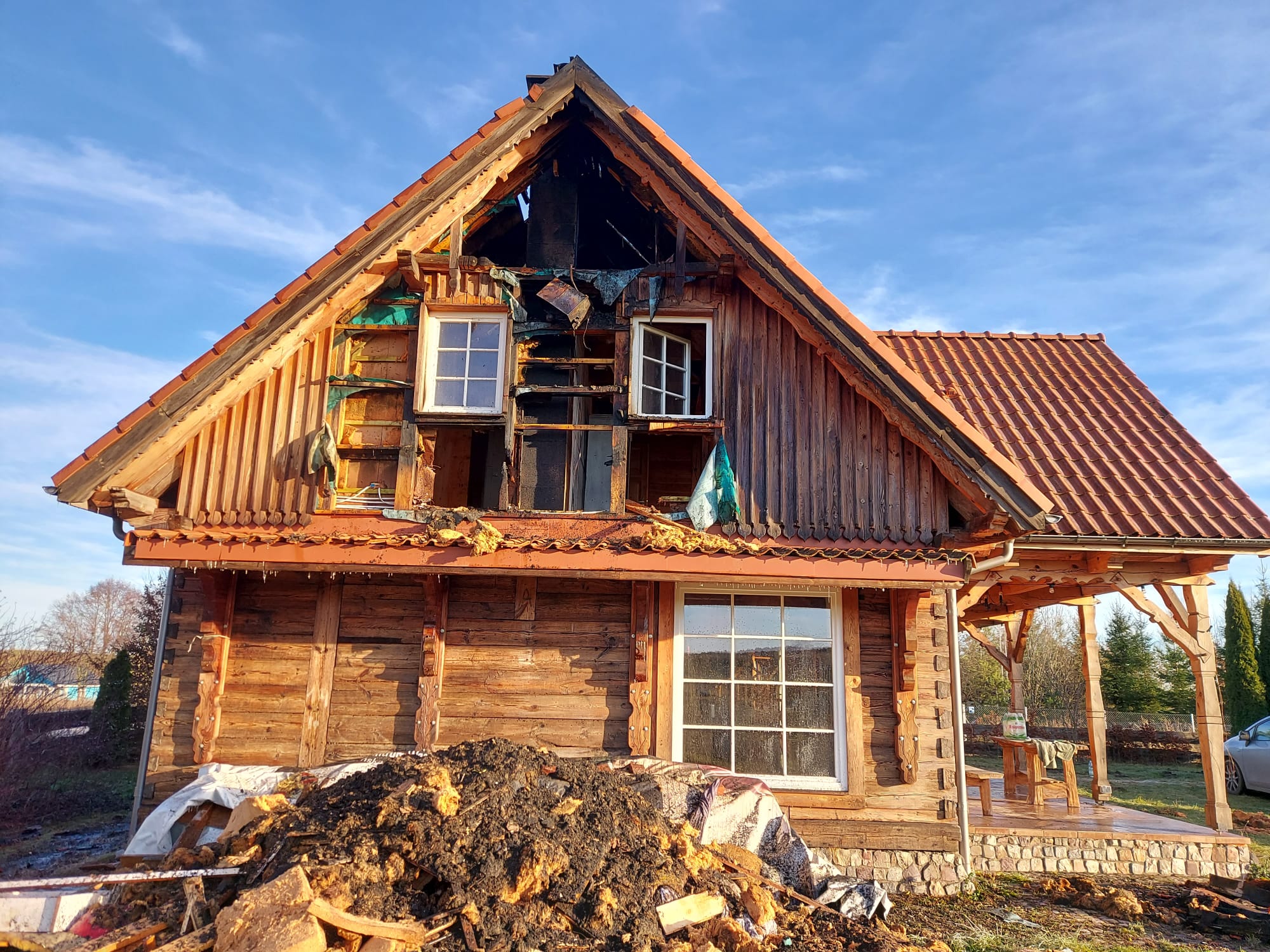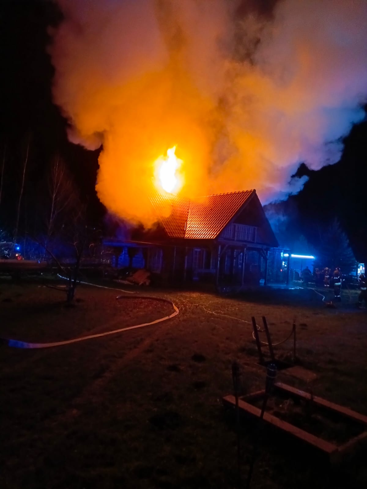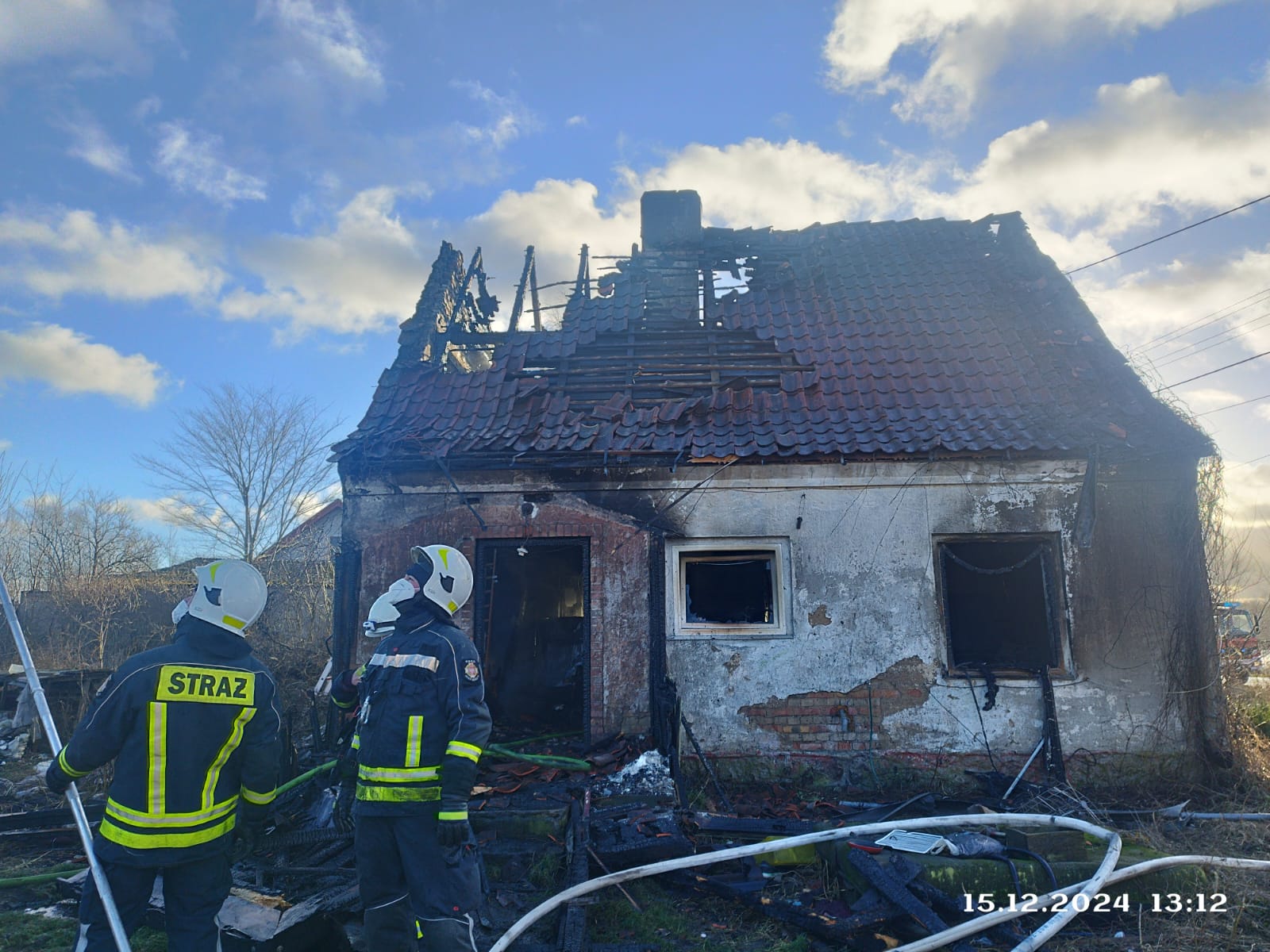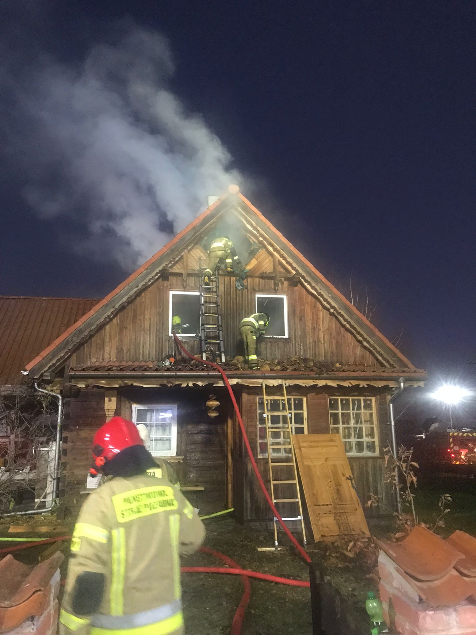 Dwa dni później, czyli 15 grudnia miał miejsce kolejny niebezpieczny pożar, w którym ucierpiała niestety jedna osoba. O godzinie 12:22 strażacy z JRG Szczytno, OSP Dźwierzuty, OSP Rańsk, OSP Targowo, OSP Nowe Kiejkuty zostali zadysponowani do pożaru budynku mieszkalnego w miejscowości Orzyny. Po przybyciu na miejsce zdarzenia pierwszego zastępu KDR zastał w pełni rozwinięty pożar. Budynek składał się z poddasza użytkowego na którym panował pożar - z okien szczytowych wychodziły języki ognia, z parteru - częściowo objętego ogniem i w całości zadymionego oraz małej piwnicy w której panowało duże zadymienie. Przed przybyciem JOP dwie osoby opuściły budynek. Jedna z nich po opuszczeniu budynku podjęła próbę ewakuacji psa, który miał pozostawać wewnątrz – w trakcie próby wejścia do budynku doszło do ogólnego poparzenia ciała - głównie oparzona cała twarz, poparzone obie ręce. Po zabezpieczeniu miejsca zdarzenia, odłączeniu prądu, sprawiono drabiny przystawne, podano dwa prądy wody w natarciu od wewnątrz płonącego budynku oraz jeden prąd wody na zewnątrz. Jednocześnie udzielono kwalifikowanej pierwszej pomocy poszkodowanej kobiecie - wsparcie psychiczne, zapewnienie komfortu termicznego, założenie opatrunków hydrożelowych na poparzone miejsca ciała, przeprowadzono tlenoterapię bierną, przekazano poszkodowaną dla ZRM. Zespół Ratownictwa Medycznego wezwał na miejsce zdarzenia Lotnicze Pogotowie Ratunkowe. Osoba poszkodowana została zabrana śmigłowcem do Szpitala. Ratownicy-strażacy oddymili budynek za pomocą wentylatora, sprawili zasilanie z pobliskiego hydrantu, wyrzucili nadpalone elementy z poddasza i parteru na zewnątrz budynku, rozebrali część elementów pokrycia dachu oraz całkowicie rozebrali przedsionek. W zgliszczach niestety ujawniono zwłoki kota. Po ugaszeniu upewniono się przy pomocy kamery termowizyjnej, że nie występują nigdzie zarzewia ognia. Straty oszacowano na 150 tys. zł. W działaniach brało udział 7 zastępów w tym 31 strażaków. Akcja trwała ponad 3 godziny.