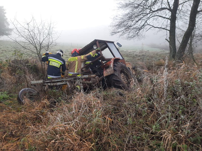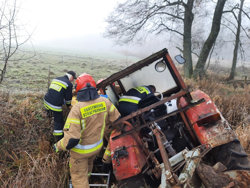 W dniu 16 listopada 2023 r. dyżurny Stanowiska Kierowania Komendanta Powiatowego w Szczytnie odebrał zgłoszenie o wypadku z udziałem ciągnika rolniczego w miejscowości Klon. Na miejsce zdarzenia zadysponował zastępy z JRG PSP w Szczytnie oraz OSP z terenu powiatu szczycieńskiego.