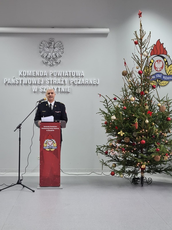 21 grudnia 2022 roku, w sali konferencyjnej Komendy Powiatowej PSP w Szczytnie, odbyło się spotkanie wigilijne pracowników komendy.