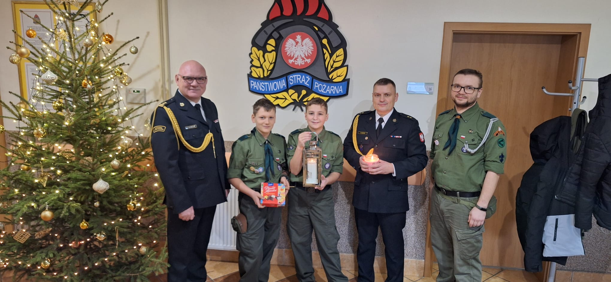 Należy nadmienić, iż w dzień spotkania wigilijnego naszą komendę odwiedzili harcerze ZHP przekazując nam Betlejemskie Światło Pokoju, które miało honorowe miejsce na naszym stole.