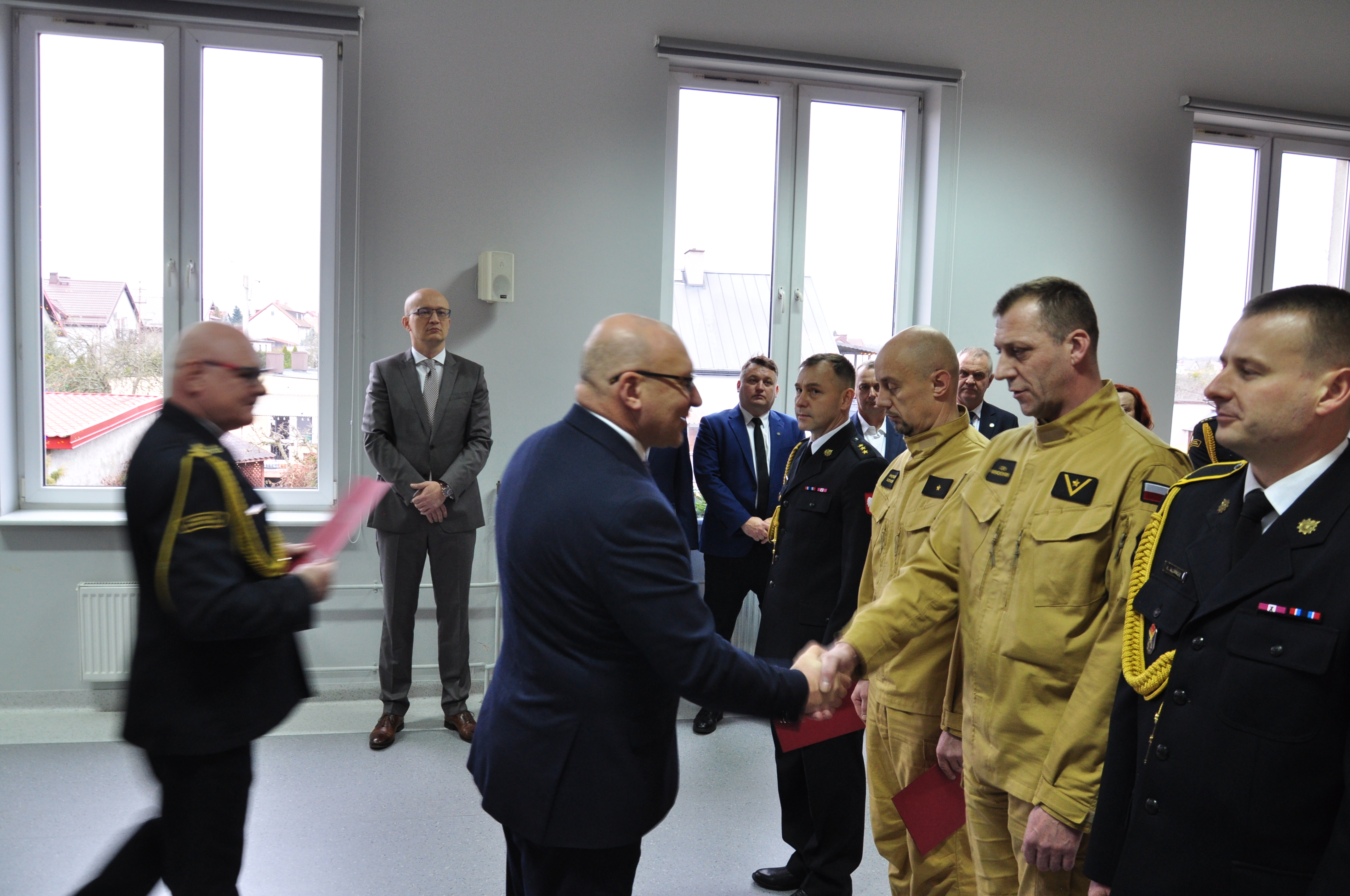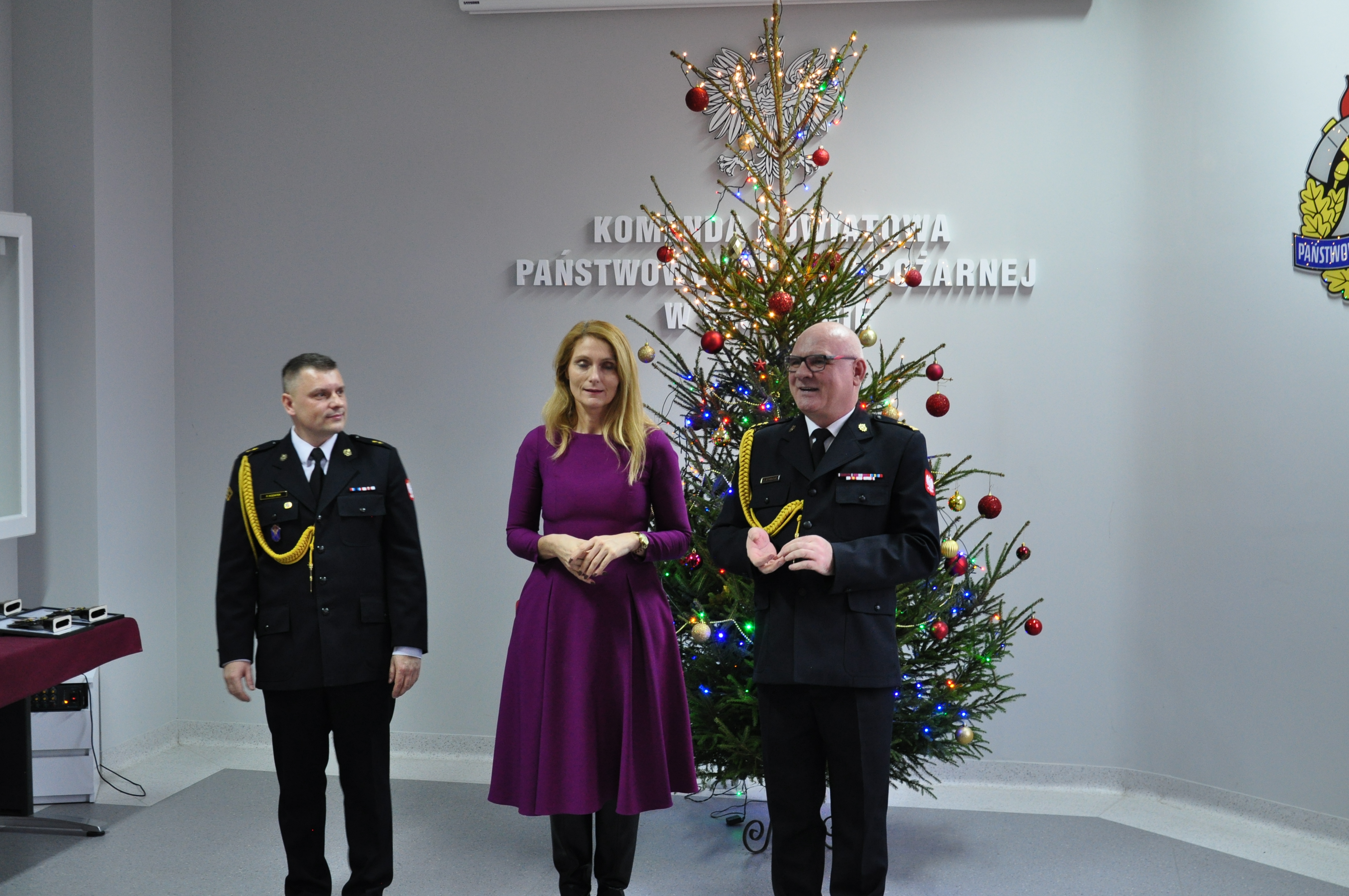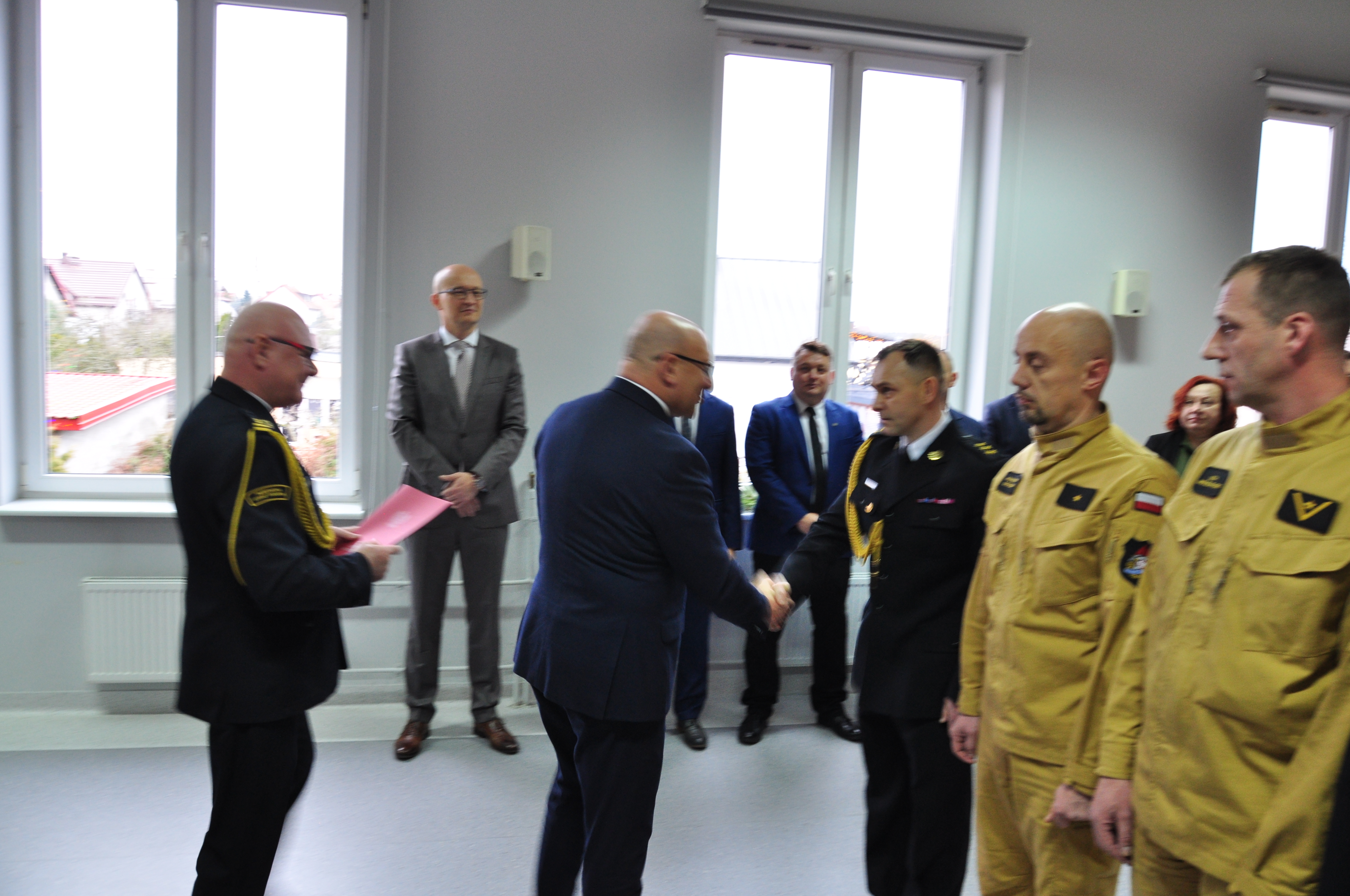 W uroczystości wzięli udział: Wicemarszałek Województwa Warmińsko-Mazurskiego Pani Sylwia Jaskulska, Starosta Szczycieński Pan Jarosław Matłach, kapelan powiatowy strażaków ks. Józef Midura, przedstawiciele zaprzyjaźnionych instytucji oraz firm, które wspierają komendę w Szczytnie.
