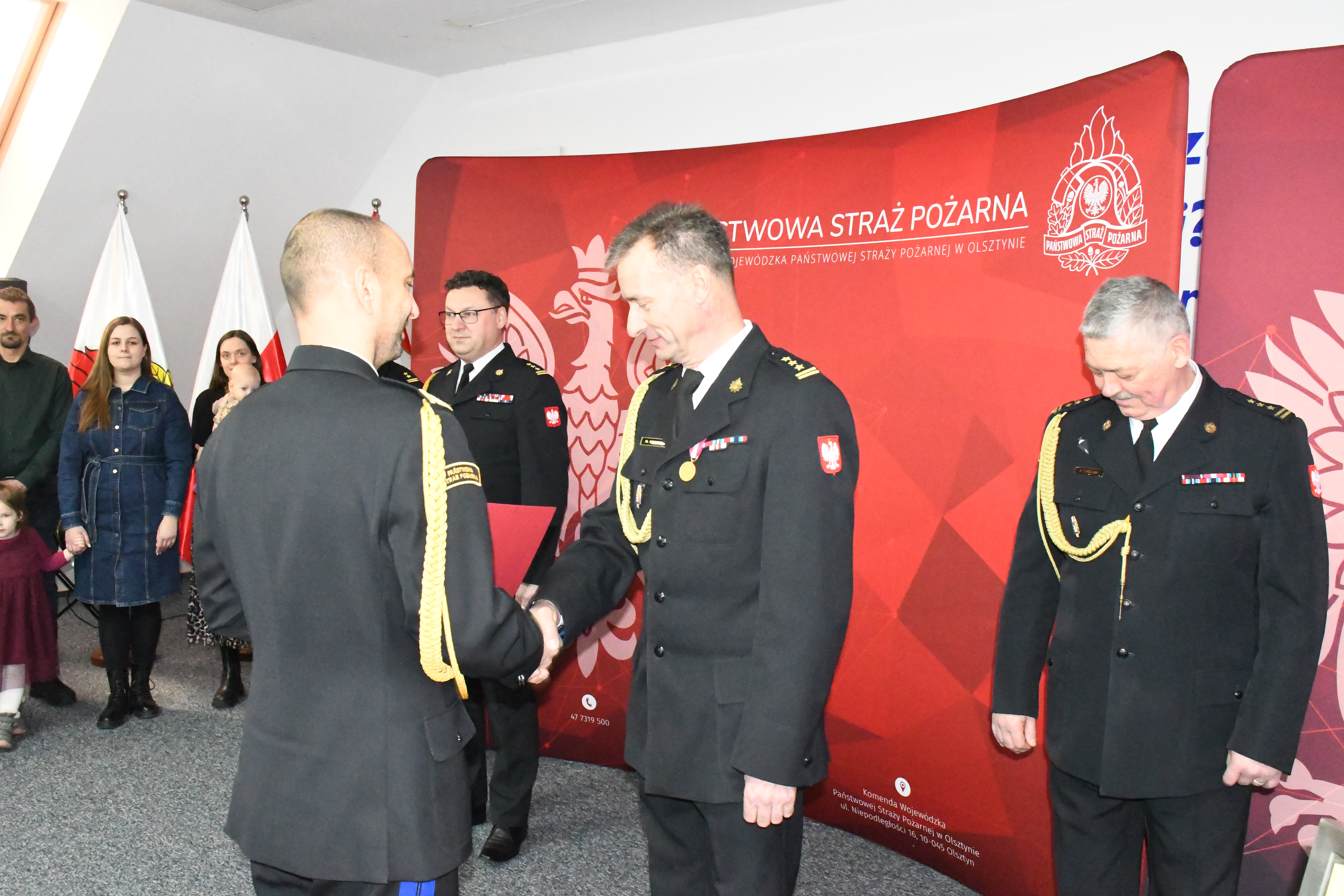 W uroczystości uczestniczyli funkcjonariusze i pracownicy Komendy Wojewódzkiej PSP w Olsztynie wraz z kierownictwem, komendanci powiatowi i miejscy PSP z terenu Warmii i Mazur, przedstawiciele pionów kadrowych i operacyjnych, a także liczna delegacja z Komendy Powiatowej PSP w Szczytnie. Tak szeroka obecność była wyrazem szacunku i uznania dla drogi zawodowej oraz dorobku st. bryg. Mariusza Gęsickiego, jak również st. bryg. Arkadiusza Turulskiego – Naczelnika Wydziału Kadr KW PSP w Olsztynie, który tego samego dnia przeszedł na zaopatrzenie emerytalne.