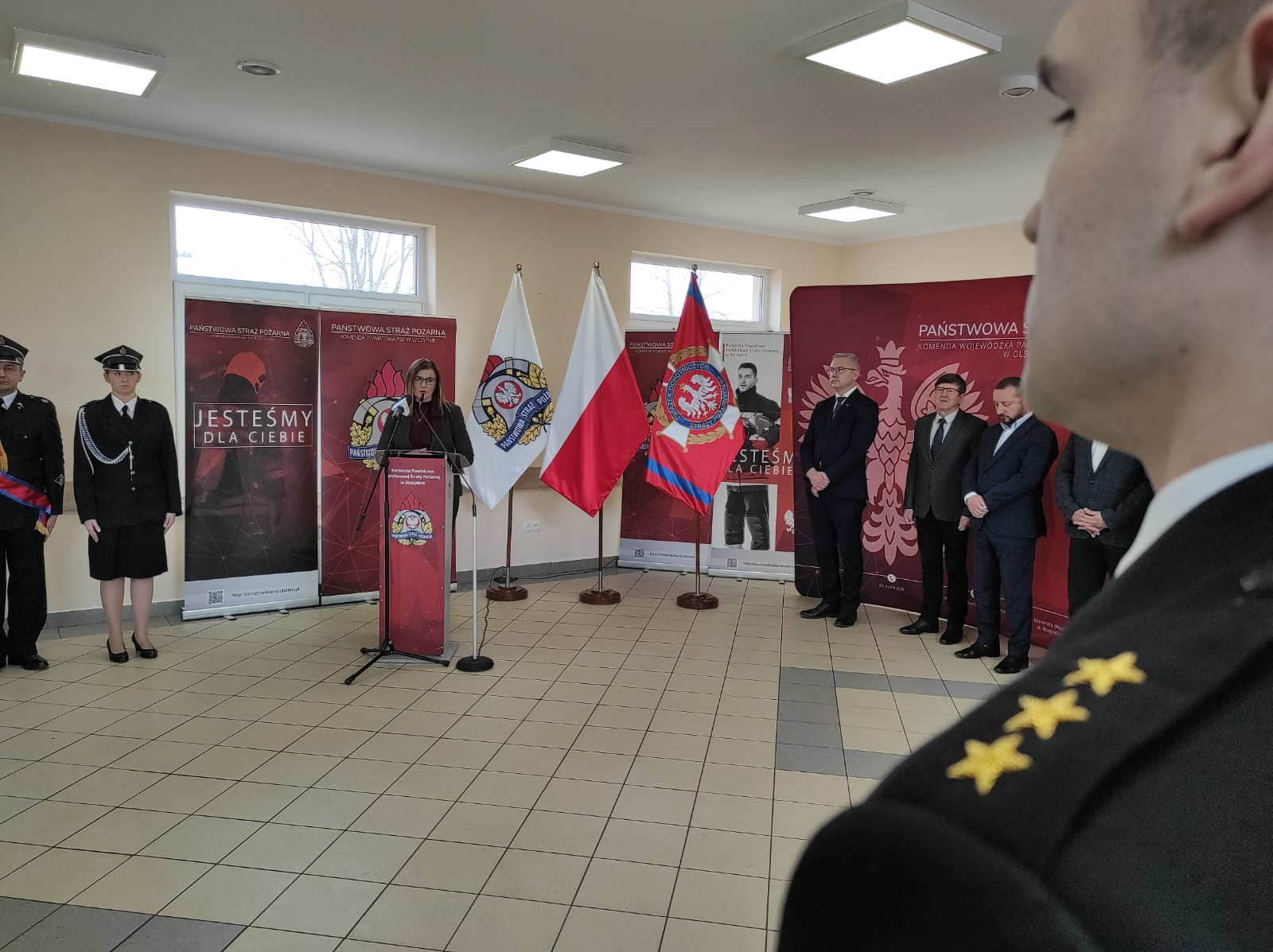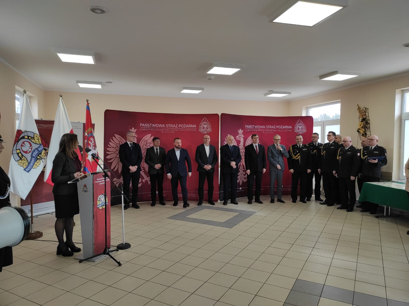 W uroczystej zbiórce udział wzięli Pan Jerzy Małecki – Poseł na Sejm RP, Pan Błażej Poboży – Podsekretarz stanu w MSWiA, Pan Artur Chojecki – Wojewoda Warmińsko-Mazurski, przedstawiciel Rządu w terenie, Pan Jarosław Bogusz – Prezes Zarządu Wojewódzkiego Funduszu Ochrony Środowiska i Gospodarki Wodnej, Pan nadbryg. Tomasz Komoszyński – Warmińsko-Mazurski Komendant Wojewódzki Państwowej Straży Pożarnej w asyście swojego zastępcy st. bryg. Tomasza Ostrowskiego, Pan Henryk Żuchowski – Radny Sejmiku Województwa Warmińsko-Mazurskiego, Dyrektor KRUS w Olsztynie, Starosta Powiatu Szczycieńskiego Pan Jarosław Matłach, Panie i Panowie Burmistrzowie, Wójtowie oraz przedstawiciele władz samorządowych województwa warmińsko-mazurskiego, Panowie Komendanci Miejscy i Powiatowi województwa warmińsko -mazurskiego oraz Prezesi i Naczelnicy z jednostek Ochotniczych Straży Pożarnych.