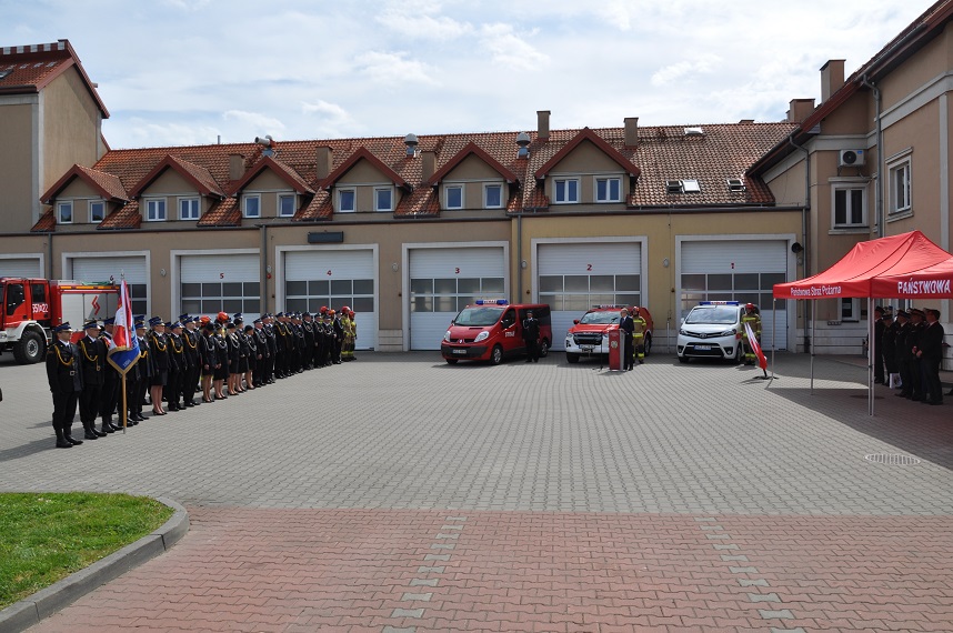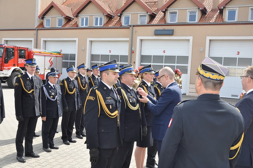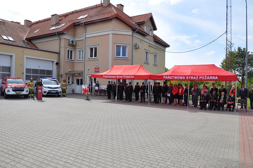 W uroczystościach udział wzięli: Podsekretarz Stanu w MSWiA Pan Błażej Poboży, Wojewoda Warmińsko-Mazurski Pan Artur Chojecki, Członek Zarządu Województwa Warmińsko- Mazurskiego Pani Sylwia Jaskulska, Warmińsko-Mazurski Komendant Wojewódzki nadbryg. Tomasz Komoszyński, Radny Sejmiku Województwa Warmińsko-Mazurskiego Pan Henryk Żuchowski, kapelan powiatowy strażaków ks. Józef Midura, przedstawiciele służb mundurowych, samorządów, instytucji współpracujących, strażacy, druhowie oraz pracownicy cywilni komendy.