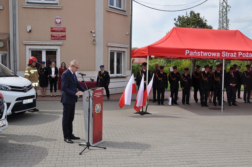 Ostatnim elementem uroczystości było przekazanie oraz poświęcenie dwóch nowych samochodów specjalnych Komendy Powiatowej PSP w Szczytnie, tj. samochodu lekkiego rozpoznawczo-ratowniczego ISUZU oraz samochodu lekkiego bus marki Toyota. Przekazano również jednostce OSP Szymany samochód lekki bus marki Renault, który do tej pory służył w KP PSP w Szczytnie. Wręczenia aktów przekazania dokonał Podsekretarz Stanu w MSWiA Pan Błażej Poboży oraz Warmińsko-Mazurski Komendant Wojewódzki nadbryg. Tomasz Komoszyński.