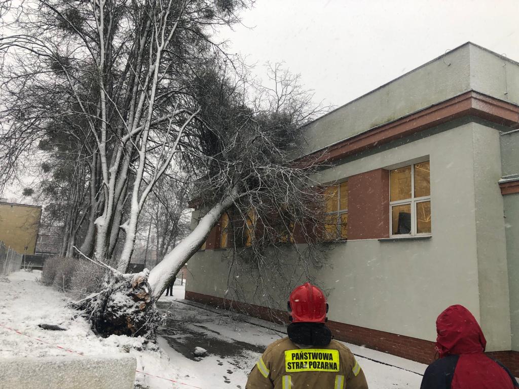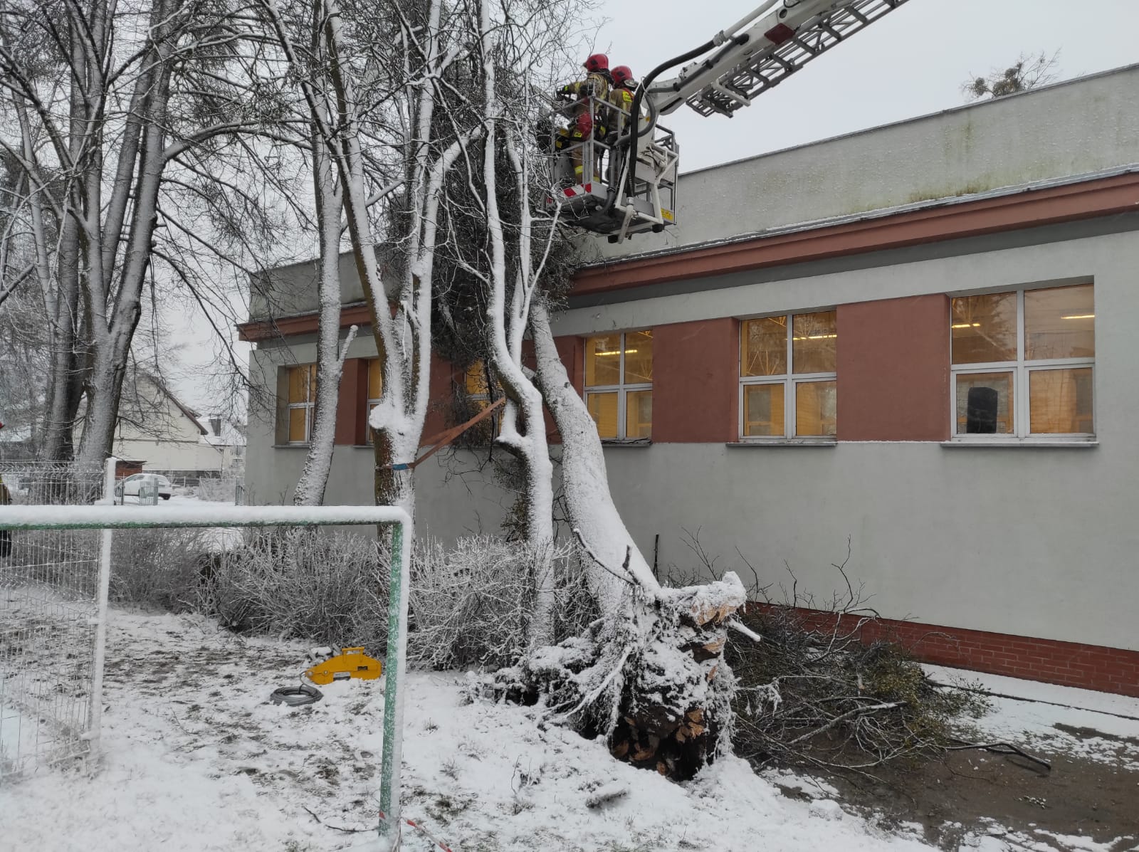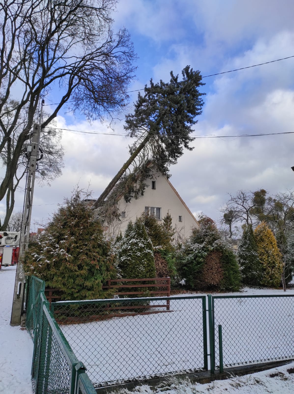 W tym samym czasie otrzymał on informację o 8 zdarzeniach, które wymagały wsparcia jednostek ochrony przeciwpożarowej. Zastępy pożarnicze, dysponowane były głównie do usunięcie drzew z dróg komunikacyjnych. Na cmentarzu komunalnym w Szczytnie, drzewo przewróciło się na betonowy słup energetyczny, łamiąc go. W innym miejscu, przy Restauracji ,,Zacisze” w Szczytnie, konar zawieszony był na linii energetycznej. W obu przypadkach strażacy zabezpieczyli miejsce zdarzenia i udali się w miejsce kolejnych zgłoszeń. Kolejne zdarzenia natomiast dotyczyły wywróconych drzew, które w wyniku silnego wiatru, uderzyły w budynki miejskie, na których się zatrzymały. Pierwsze tego typu zdarzenia dotyczyło powalonego drzewa na salę gimnastyczną Szkoły Podstawowej nr 2 w Szczytnie, gdzie dzięki sprawnym działaniom straży, udało się bez dodatkowych strat usunąć zagrażające drzewo z budynku oraz znad drogi. Z tych działań zastępy zostały przedysponowane na ulicę Pułaskiego, gdzie na budynku zrzeszającym miejskie stowarzyszenia ,,oparł” się 30m świerk. Ze względu na nie wystarczające parametry techniczne podnośnika hydraulicznego ze szczycieńskiej jednostki, zadysponowano 42 metrowy podnośnik hydrauliczny z jednostki JRG 2 Olsztyn, dzięki któremu ratownicy mogli dotrzeć do czubka drzewa i sukcesywnie kawałek po kawałku usuwać je znad budynku. W czasie prowadzonych działań miały także miejsce dwa wypadki samochodowe, w wyniku których dwie młode kobiety trafiły do szpitala. Działania trwały od godziny 8 do godziny 15. Łącznie 12 zdarzeń w ciągu 7 godzin.