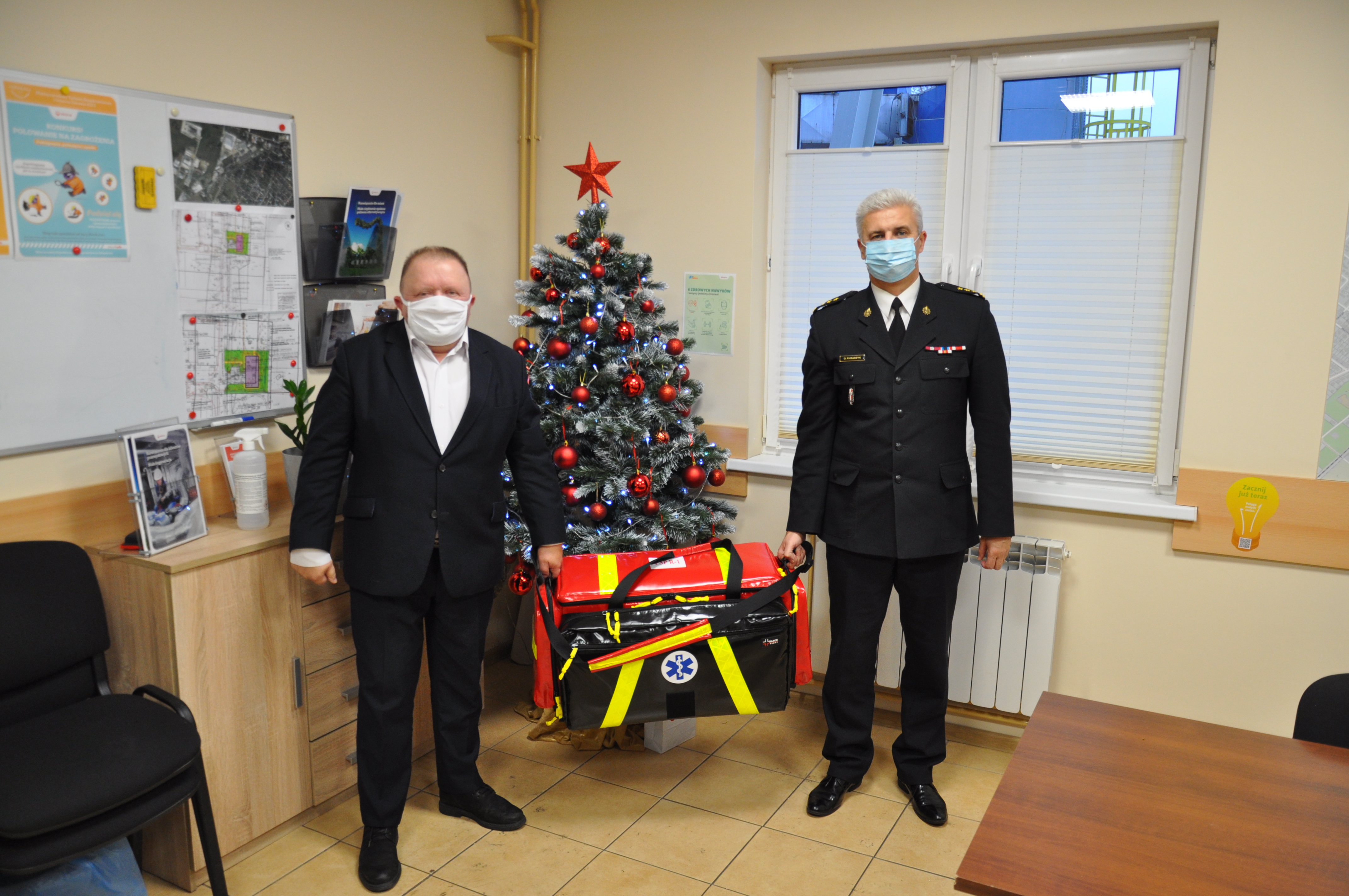 W czwartek, 9 grudnia br. Komendant Powiatowy PSP w Szczytnie st.bryg. Grzegorz Rybaczyk otrzymał z rąk Pana Marka Kaszkowiaka, Prezesa Spółki Veolia Szczytno nowoczesne torby ratownictwa medycznego.