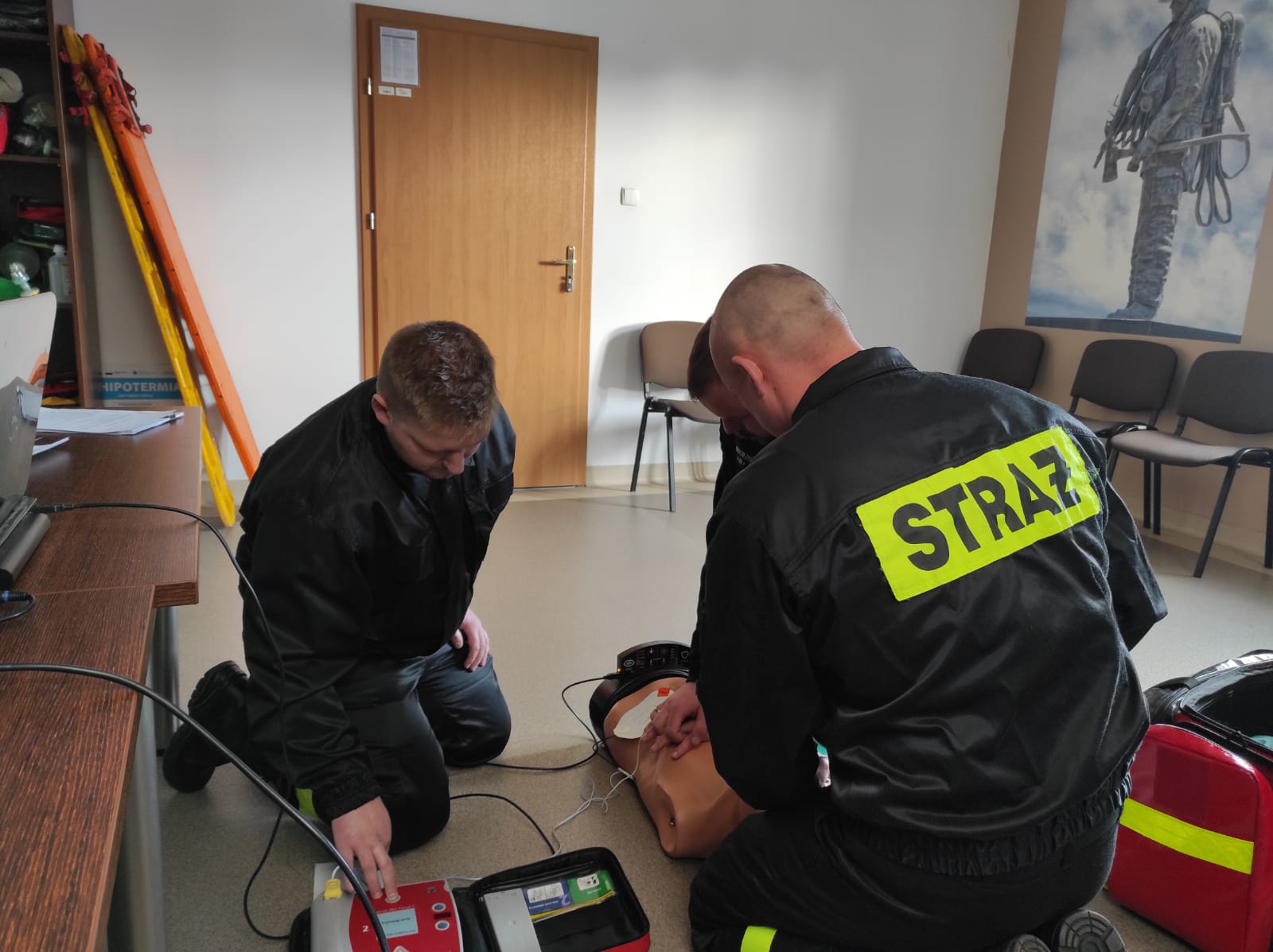 W trakcie powyższych zadań, realizowanych przez funkcjonariuszy komendy, wizytę w Komendzie Powiatowej PSP w Szczytnie złożył Zastępca Warmińsko-Mazurskiego Komendanta Wojewódzkiego PSP st. bryg. Tomasz Ostrowski. Po przyjeździe zastępca komendanta wojewódzkiego odebrał meldunek od zastępcy dowódcy jednostki ratowniczo-gaśniczej st. kpt. Pawła Kozłowskiego, po czym udał się na rozpoczęcie recertyfikacji uprawnień kwalifikowanej pierwszej pomocy dla druhów OSP z powiatu szczycieńskiego. Przez okres dwóch miesięcy druhowie wraz z policjantami przygotowywali się do podejścia do recertyfikacji uprawnień KPP, które realizowane są przez funkcjonariuszy PSP, będących czynnymi ratownikami medycznymi. Za przygotowania z ramienia komendy odpowiadał asp. Krzysztof Szewczak, powiatowy koordynator ratownictwa medycznego. 25 druhów ukończyło pozytywnie recertyfikację, odnawiając swoje uprawnienia na kolejne 3 lata. Pięciu funkcjonariuszy z KP Policji w Szczytnie, po odbytym przygotowaniu prowadzonym przez strażaków, w dniu 30 listopada br. w Ośrodku Szkolenia KW PSP w Olsztynie pozytywnie zaliczyło recertyfikację uprawnień kwalifikowanej pierwszej pomocy.