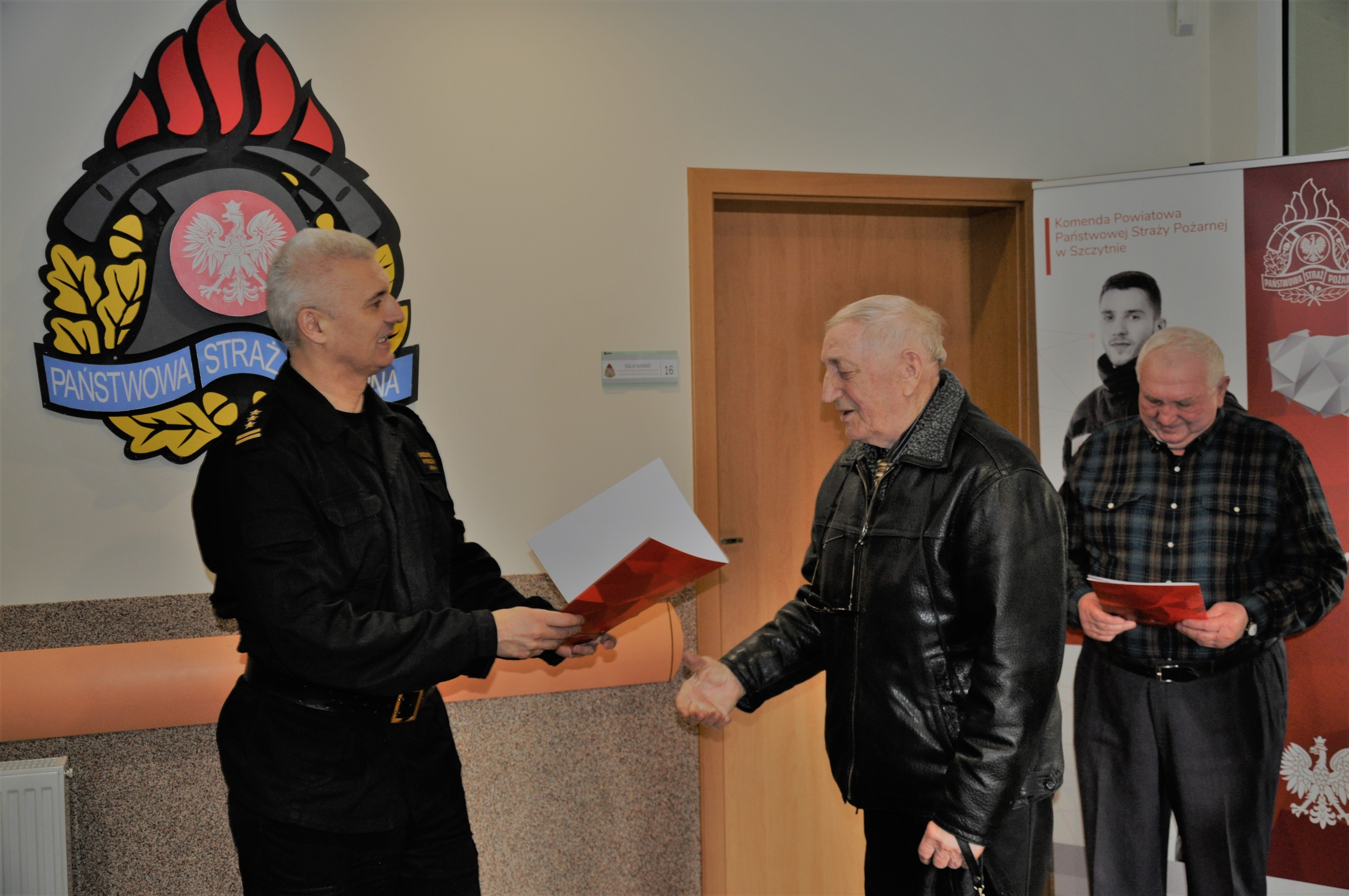 W Komendzie Powiatowej PSP w Szczytnie zjawili się pierwsi strażacy ratownicy OSP, którzy odebrali decyzje przyznające świadczenie ratownicze.