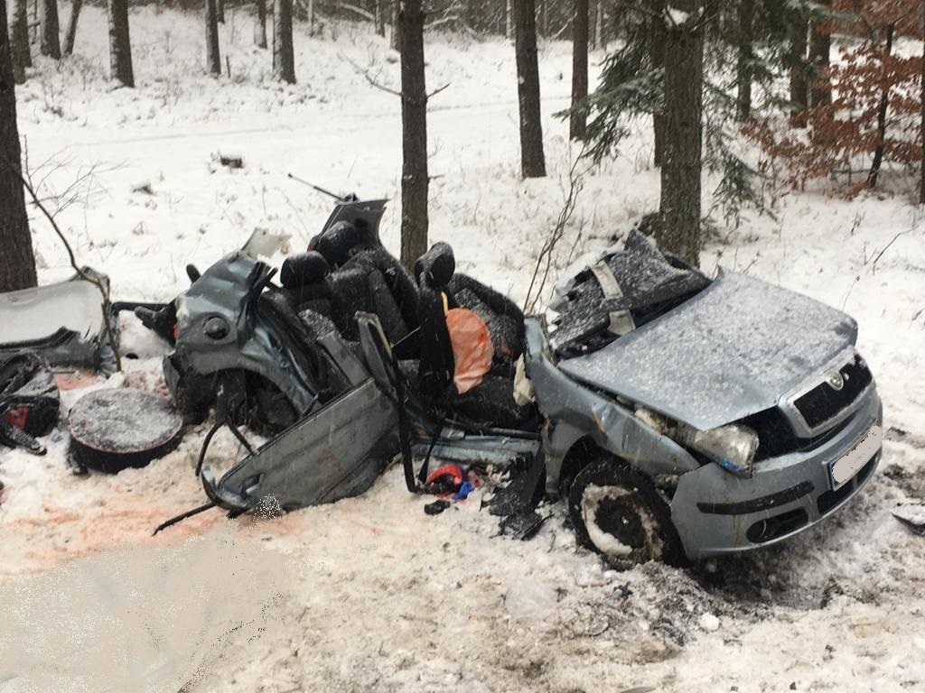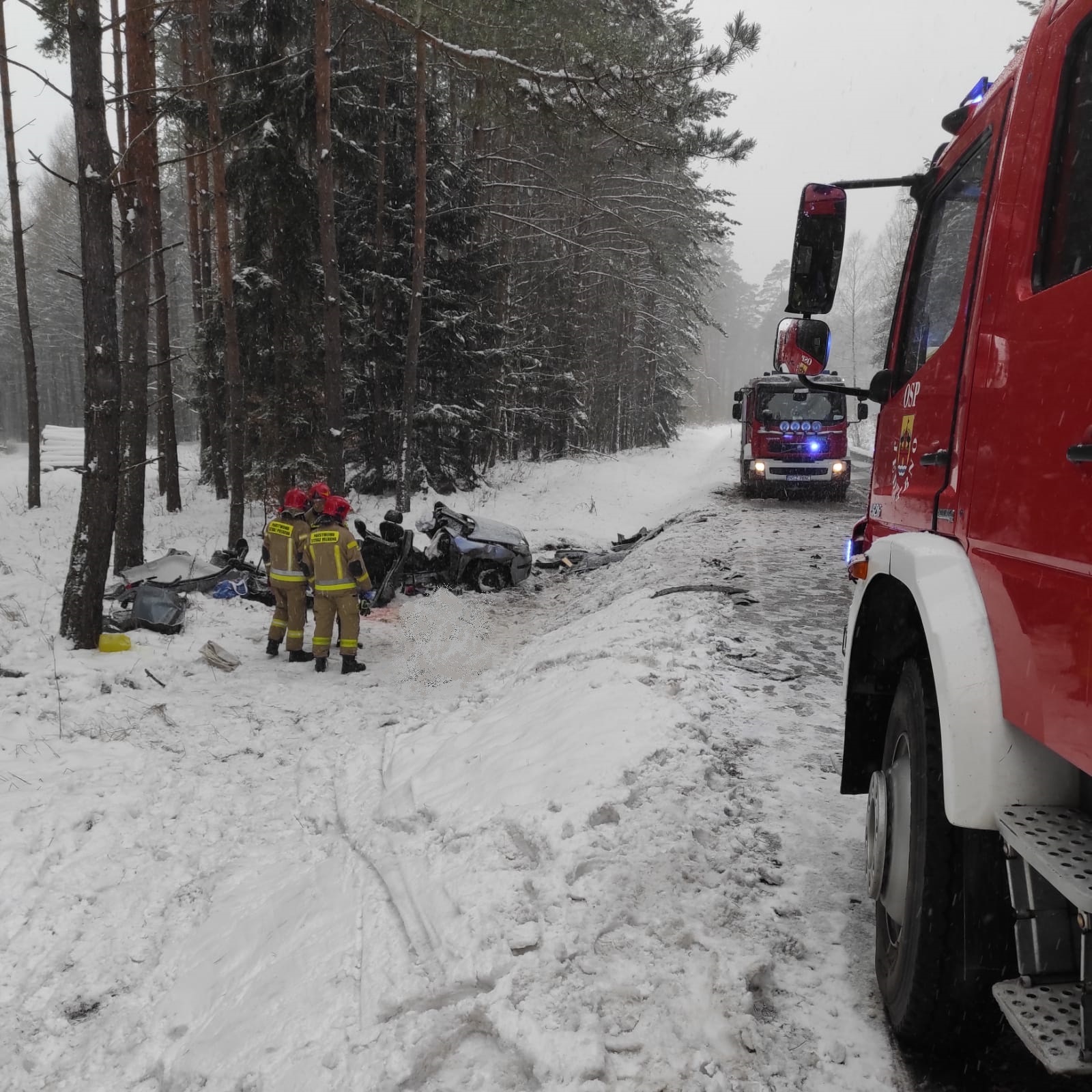Wypadek śmiertelny na trasie Jedwabno- Olsztynek. 2 osoby nie żyją.