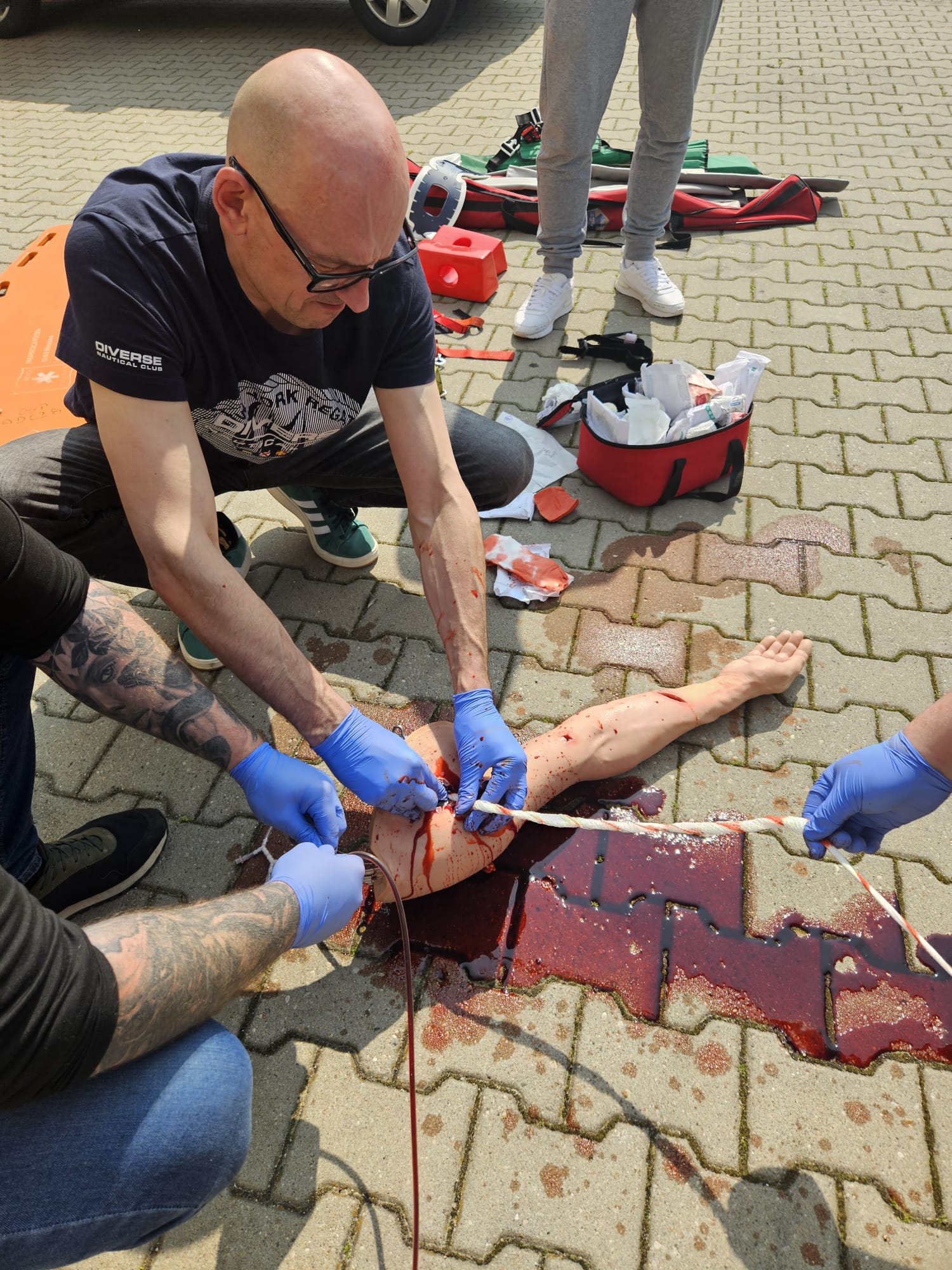 - zabezpieczenia miejsca zdarzenia i oceny stanu poszkodowanego,