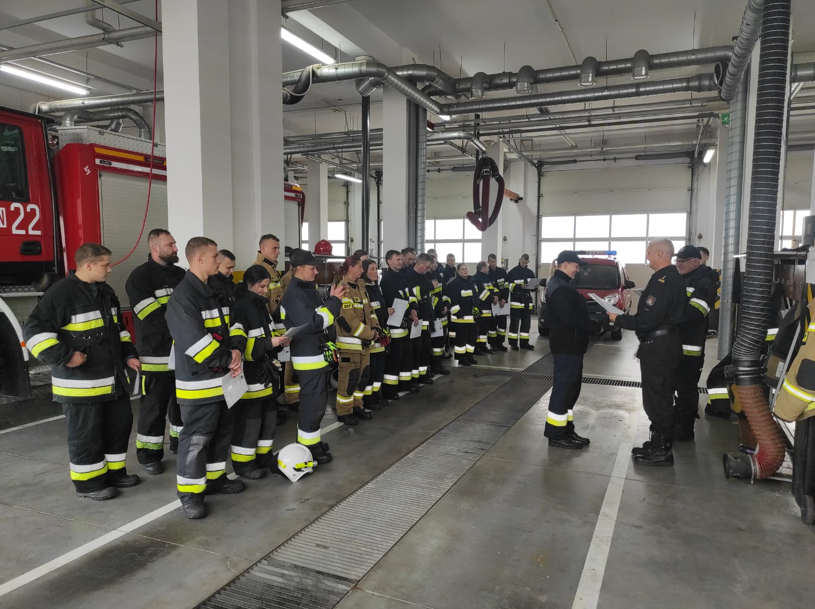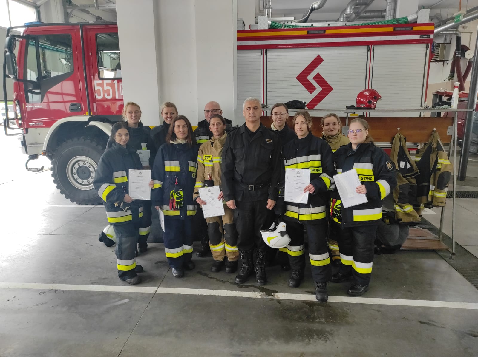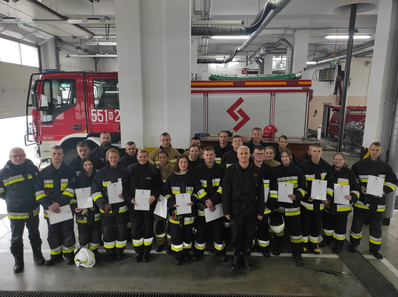 Zajęcia teoretyczne odbywały się w formie online z wykorzystaniem udostępnionego przez KW PSP w Olsztynie systemu wideokonferencyjnego. Po zakończonym bloku teoretycznym odbył się egzamin pisemny, który dopuścił osoby, które go zaliczyły do części praktycznej. Praktyka, to ćwiczenia na placu KP PSP w Szczytnie, gdzie kursanci podzieleni na cztery grupy, pod bacznym okiem instruktorów przekładali zdobytą wiedzę teoretyczną na ćwiczenia praktyczne z poszczególnych dziedzin ratownictwa. W trakcie szkolenia kursanci zaliczyli zaliczenie w komorze dymowej w Ośrodku Szkolenia KW PSP w Olsztynie. Po dwóch miesiącach, 18 września po zaliczeniu egzaminu praktycznego, nadszedł moment wręczenia zaświadczeń dopuszczających strażaków OSP do działań ratowniczo-gaśniczych. Zaświadczenia wręczył Komendant Powiatowy PSP w Szczytnie st. bryg. Grzegorz Rybaczyk, w asyście kadry dydaktycznej. Na podkreślenie zasługuje także fakt, że szkolenie podstawowe po raz pierwszy ukończyło podczas jednego kursu 9 kobiet, którym serdecznie gratulujemy.
