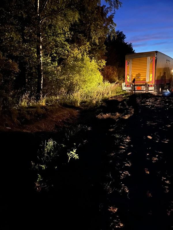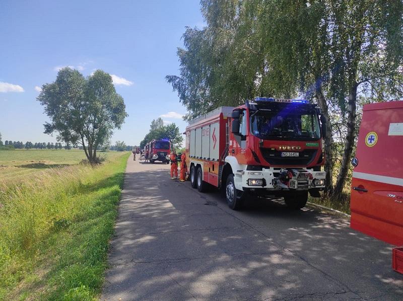 Po przybyciu na miejsce zdarzenia Kierujący Działaniem Ratowniczym stwierdził, iż na poboczu drogi, na boku znajduje się samochód ciężarowy z zabudową kontenerową. Pojazdem podróżowała jedna osoba, która znajdowała się poza pojazdem. Kierowca nie odniósł żadnych obrażeń.