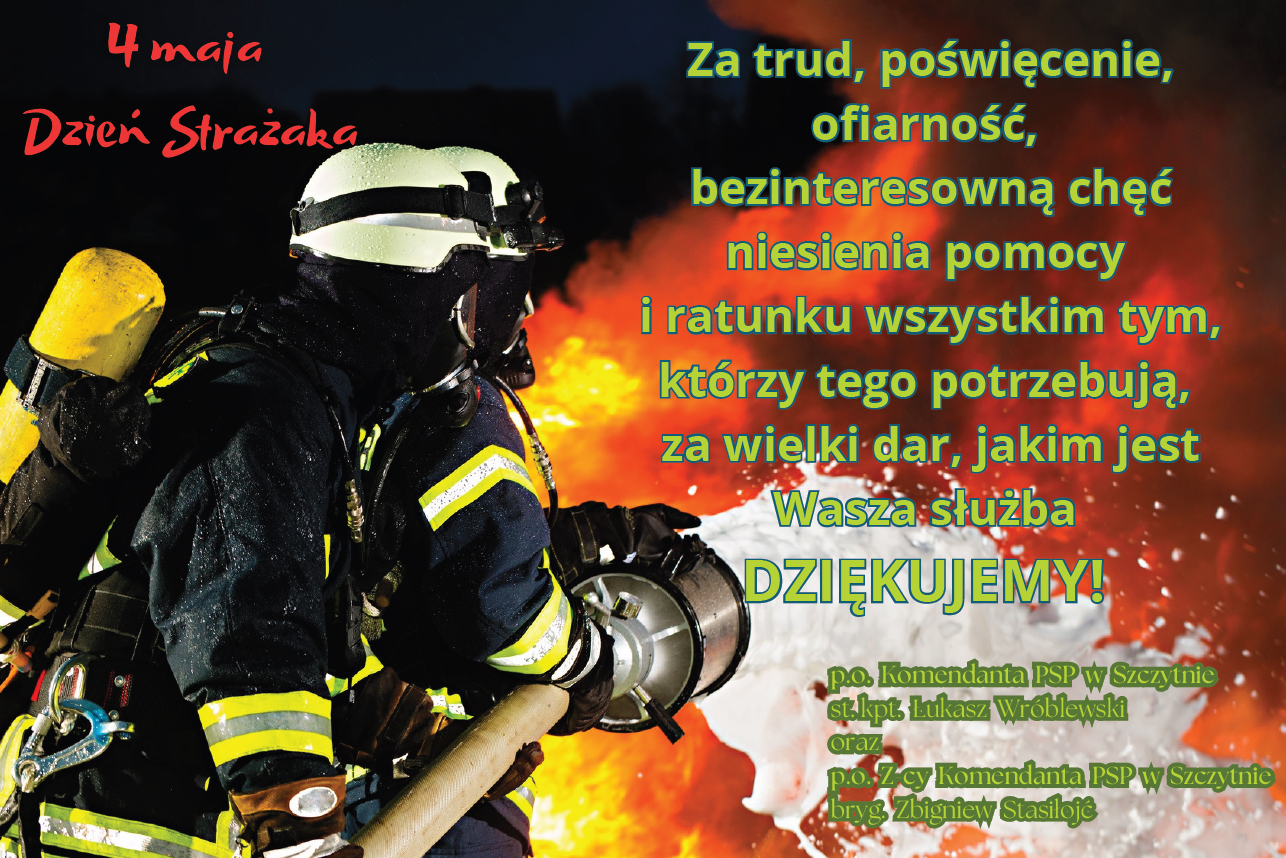 Życzenia Kierownictwa Komendy Powiatowej PSP w Szczytnie z okazji Dnia Strażaka 04.05.2024 Zdjęcia (1) Pokaż zdjęcie 1 z galerii.