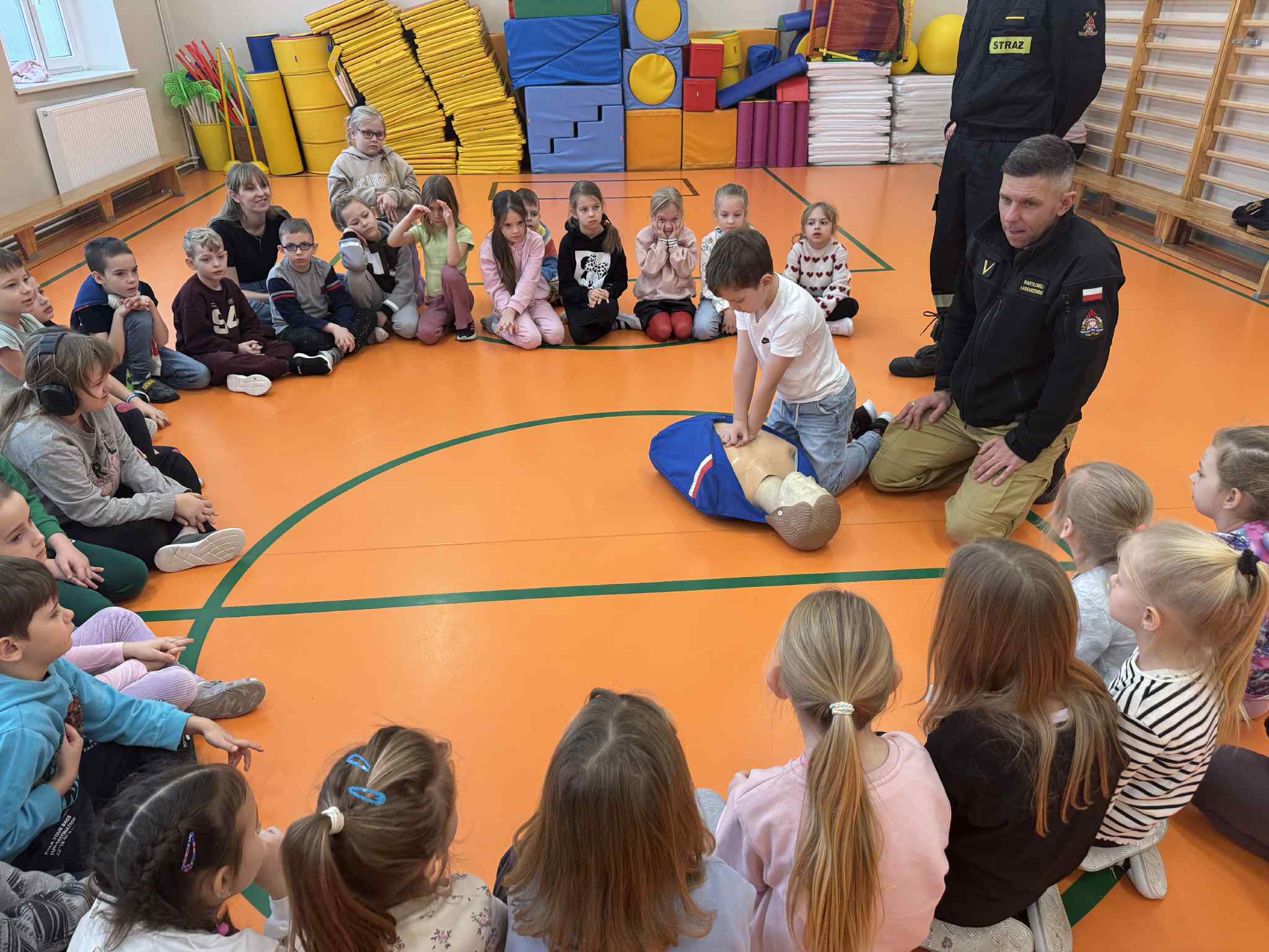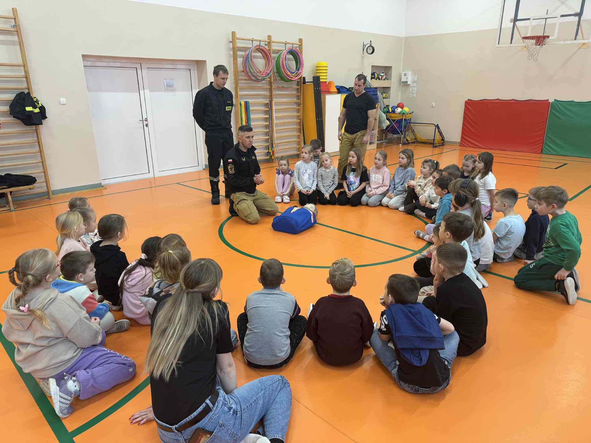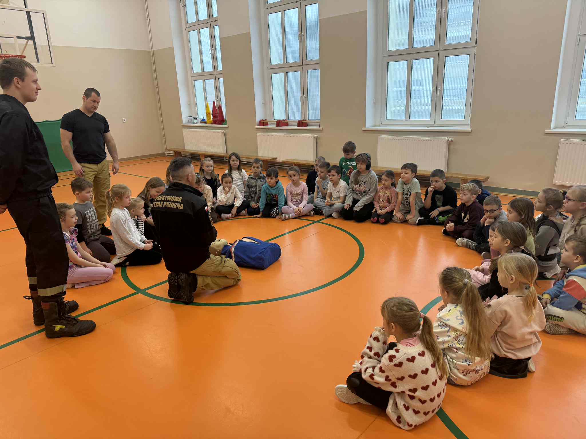 Podczas spotkania strażacy omówili najważniejsze zagrożenia związane z przebywaniem na zamarzniętych zbiornikach wodnych, takich jak jeziora, stawy czy rzeki. Uczniowie dowiedzieli się, dlaczego lód może być niebezpieczny, nawet jeśli z pozoru wydaje się gruby i stabilny, oraz jakie czynniki wpływają na jego wytrzymałość.