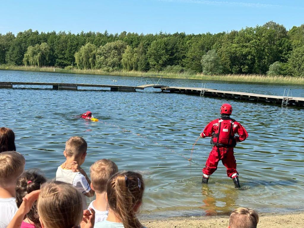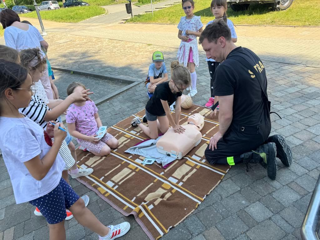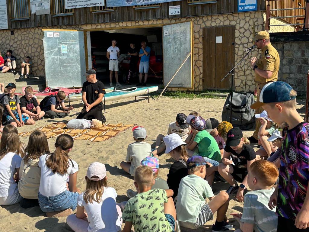 Uczniowie dowiedzieli się również w jaki sposób bezpiecznie organizować sobie wypoczynek letni nad wodą oraz gdzie i do kogo zwrócić się o pomoc. Na koniec dzieciaki mogły sprawdzić swoje umiejętności praktyczne w udzielaniu pierwszej pomocy.