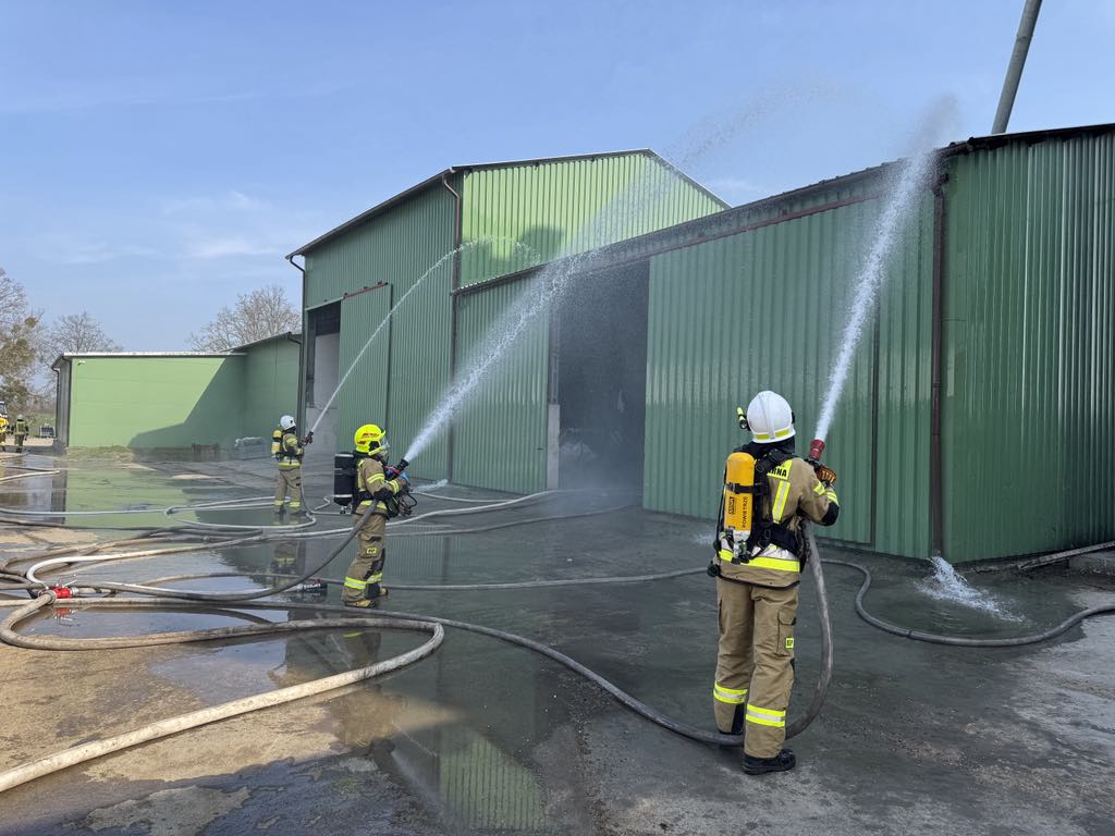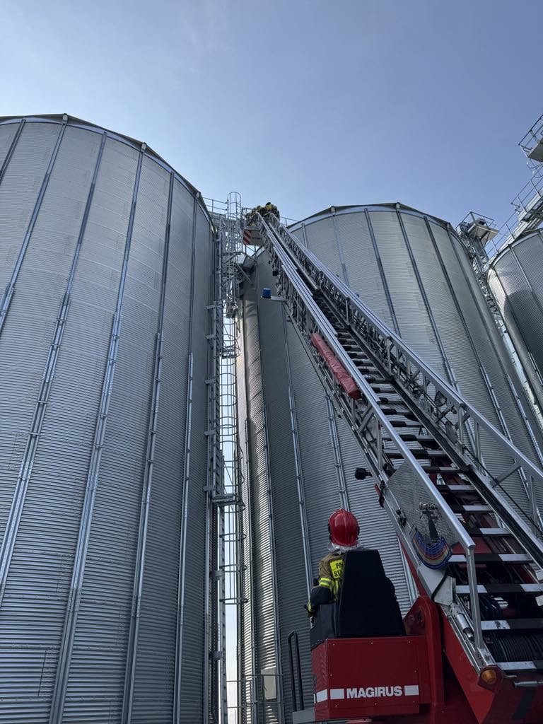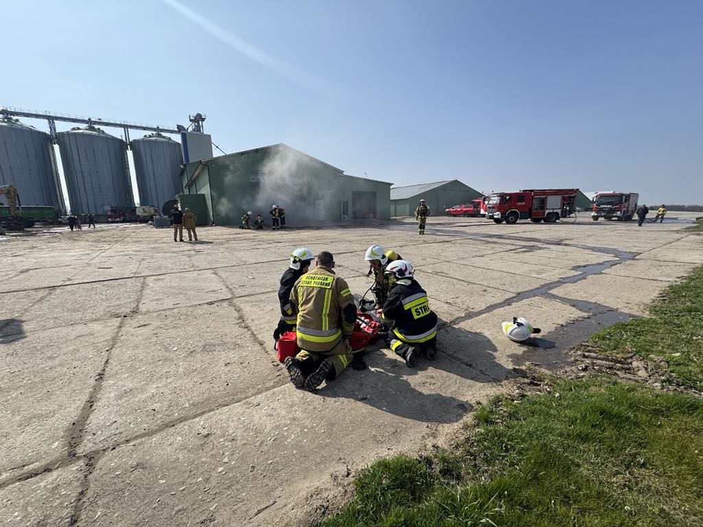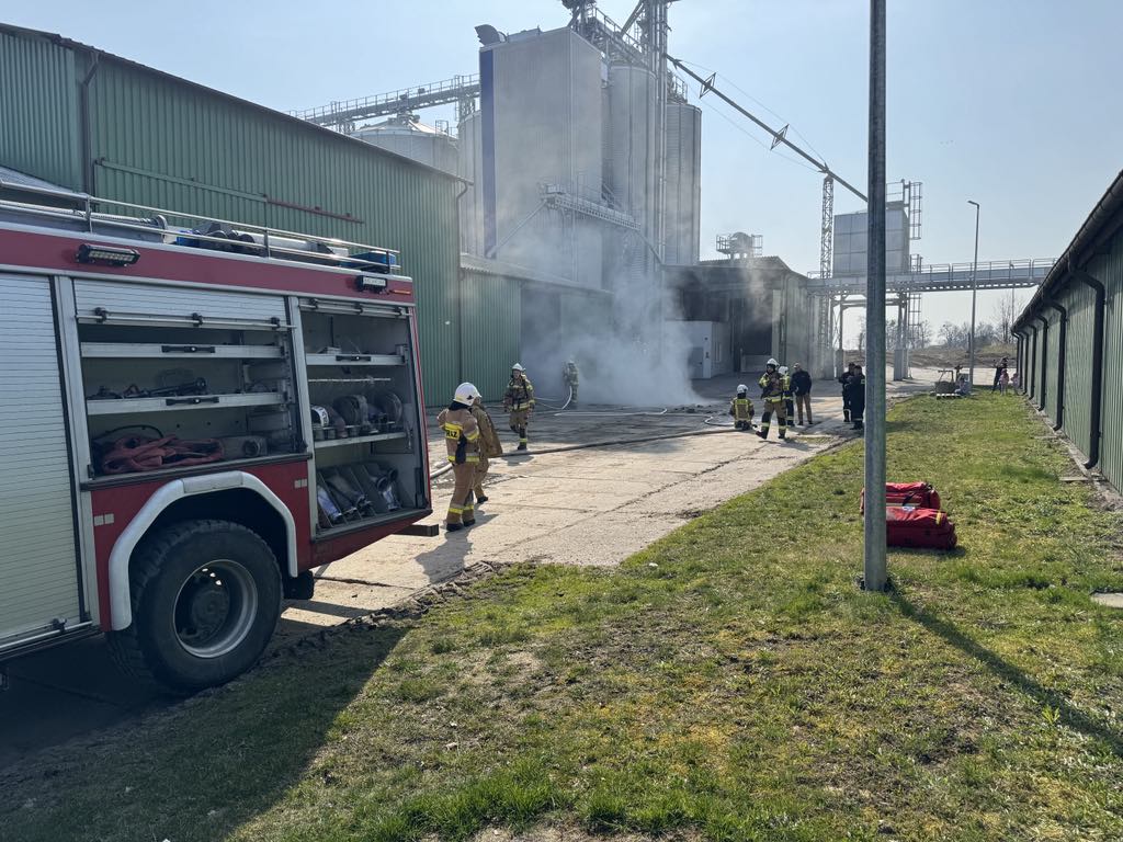 Potężne zadymienie, trzy osoby poszkodowane w tym jedna na wysokości 27 m. Z taką tematyką musieli się zmierzyć ratownicy z JRG w Sztumie oraz okolicznych jednostek OSP z Żuławki Sztumskiej, Dzierzgonia, Starego Dzierzgonia, Myślic, Mortąg i Starego Miasta.