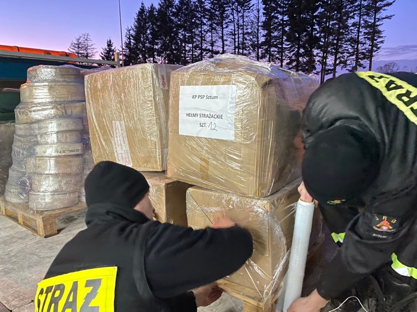 Dzięki wspólnemu zaangażowaniu funkcjonariuszy KP PSP w Sztumie oraz druhów OSP z terenu powiatu sztumskiego zebrano dużą ilość sprzętu, który został późnym wieczorem przetransportowany do KP PSP w Tczewie skąd przepakowany sprzęt wyruszy na granicę.
