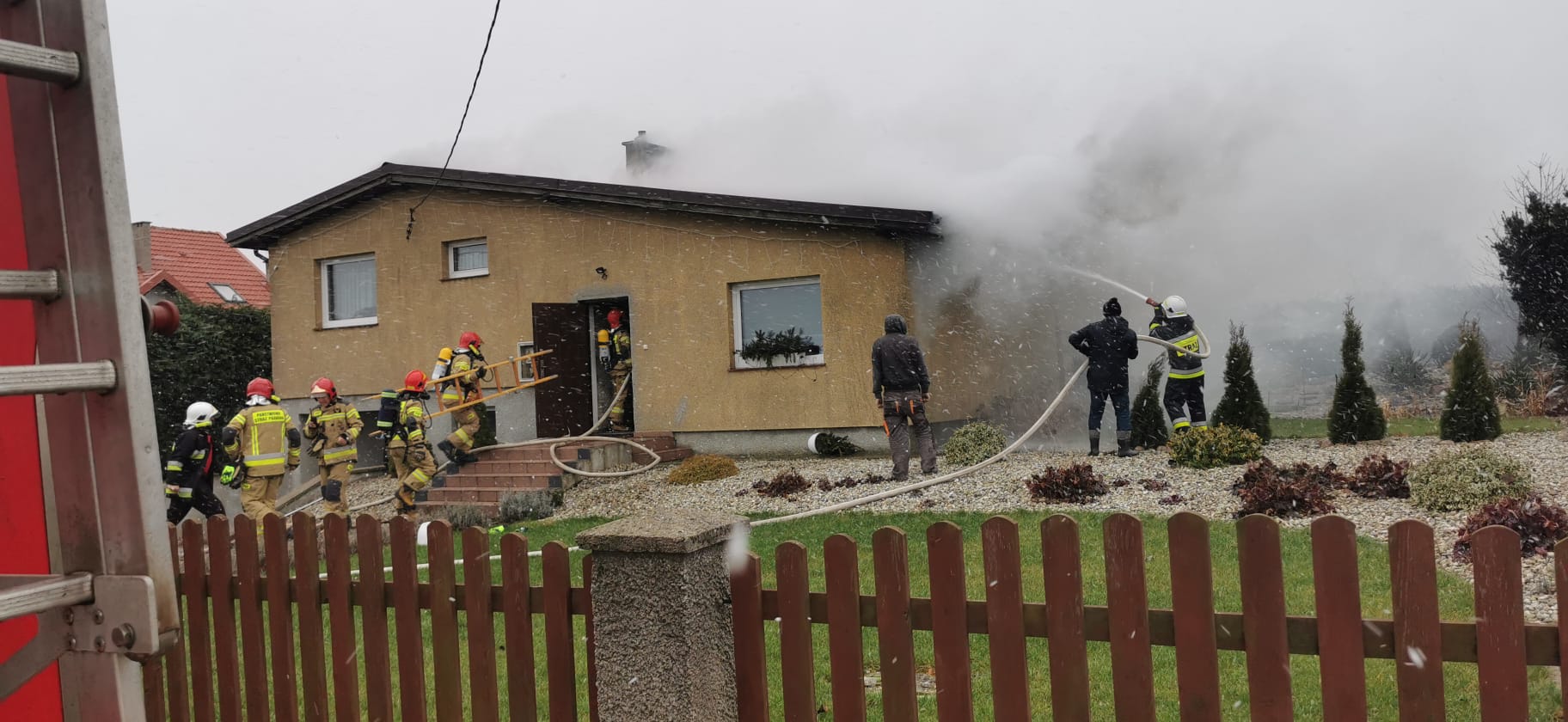 POŻAR BUDYNKU JEDNORODZINNEGO W MIEJSCOWOŚCI GOŚCISZEWO