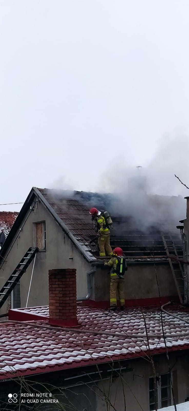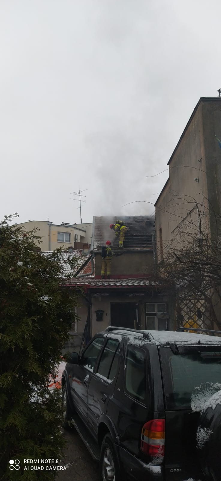 10 lutego br. Stanowisko Kierowania Komendanta Powiatowego PSP w Sztumie otrzymało zgłoszenie o pożarze poddasza budynku mieszkalnego w zabudowie szeregowej przy ul. Plebiscytowej w Sztumie. Na miejsce zadysponowane zostało łącznie 5 zastępów straży pożarnej z JRG Sztum i OSP Gościszewo. Po przybyciu na miejsce zdarzenia pierwszych zastępów zastano dym wydobywający się spod dachówek budynku mieszkalnego. Użytkownik lokalu znajdował się na zewnątrz, brak osób poszkodowanych. Działania JOP polegały na: zabezpieczeniu miejsca zdarzenia, odłączenia prądu, podania prądu gaśniczego W52 od wewnątrz przez otwór w stropie, podanie drugiego prądu gaśniczego z dachu przyległego budynku gospodarczego, budowa zasilania wodnego z pobliskiego jeziora, kontrola kamerą termowizyjną celem wykluczenia ukrytych ognisk pożaru, oddymianie i przewietrzanie pomieszczeń, pomiar miernikiem wielogazowym na obecność gazów niebezpiecznych. Otwarcie sąsiedniego budynku (pustostan) w asyście Policji i właściciela celem wykluczenia zagrożenia pożarowego.