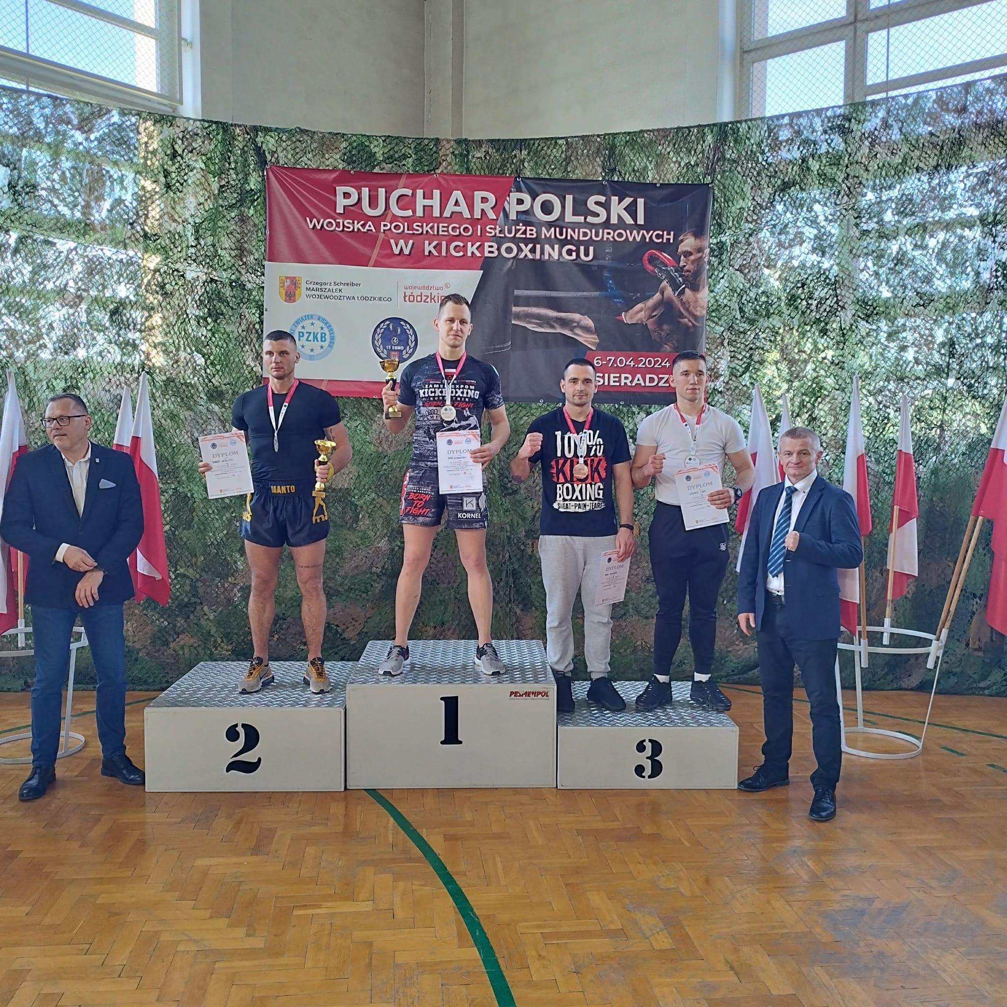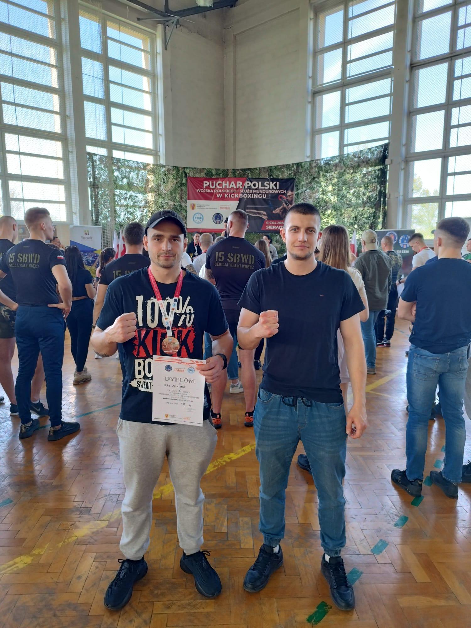 W dniach 05-07.04.2024 w Sieradzu odbył się Międzynarodowy Puchar Polski Wojska Polskiego i Służb Mundurowych w Kickboxingu. W gronie niemalże 300 zgłoszonych zawodników, z różnych formacji i reprezentujących różne style walki (m.in. Boks, Kickboxing, MMA, Karate, Muay Thai), znalazło się dwóch reprezentantów naszej jednostki: Paweł Leszczyński i Alan Ziemianek.