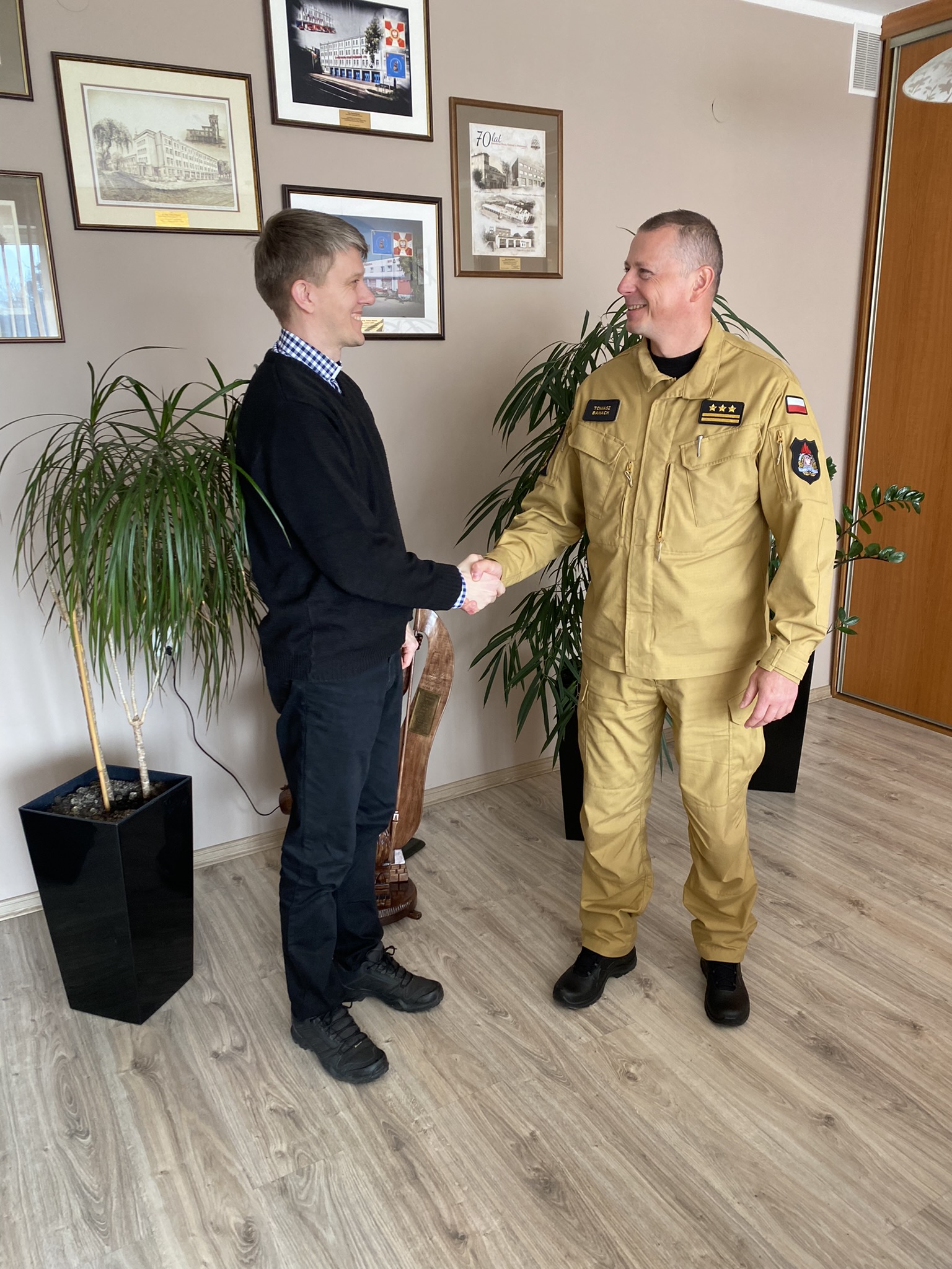 30 marca br. w siedzibie Komendy Powiatowej PSP w Sztumie odbyło sie spotkanie Komendanta Powiatowego st. bryg. Tomasza Banacha z ks. sekc. dr. Jarosławem Lisicą pomorskim Kapelanem Wojewódzkim Strażaków. Po rozmowie z pomorski Kapelan miał możliwosc zapoznania sie z warunkami pracy sztusmkich funkcjonariuszy.