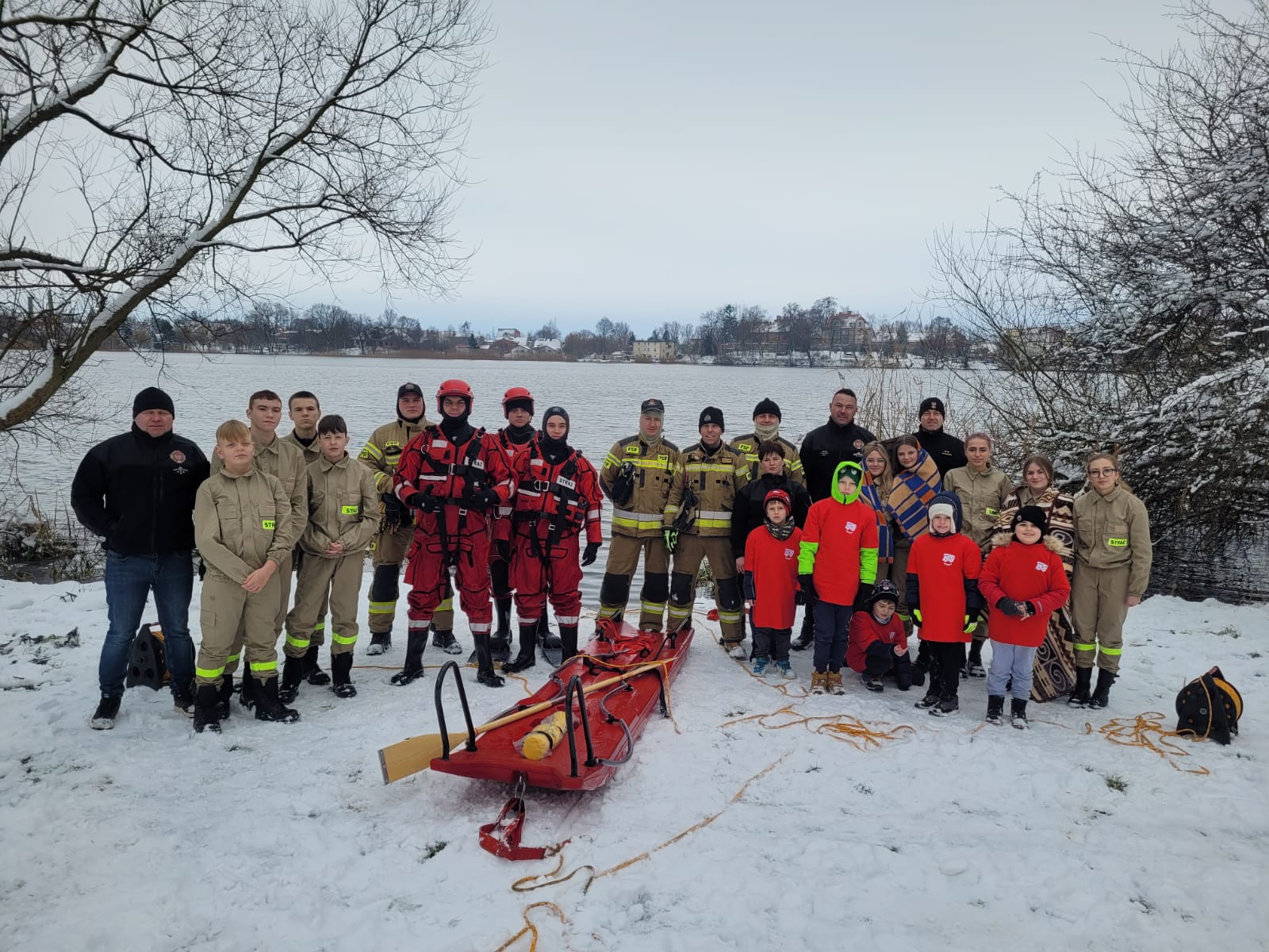 Podczas wizyty st. bryg. Tomasz Banach Komendant Powiatowy PSp w Sztumie wraz z funkcjonariuszami przybliżyli druhom specyfikę pracy strażaka na służbie, pokazali sprzęt oraz zaprezentowali swoje umiejętności podczas małego pokazu ratownictwa wodno-lodowego na jeziorze Barlewickim w Sztumie.