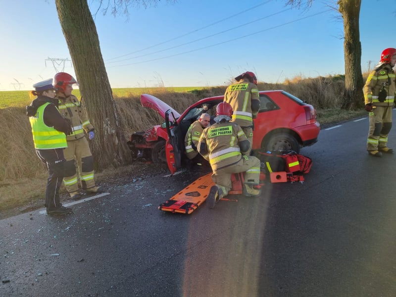 17 grudnia 2021r. o godzinie 9:06 do stanowiska kierowania Komendanta Powiatowego PSP w Sztumie wpłynęło zgłoszenie o wypadku samochodu osobowego w pobliżu miejscowości Mleczewo, gm. Stary Targ. Natychmiast do zdarzenia wysłano zastępy z JRG Sztum. Po dojechaniu na miejsce zdarzenia zastano samochód osobowy marki Audi A3 po uderzeniu w drzewo. Jedna osoba podróżowała autem – kierowca znajdujący się w pojeździe. Osoba poszkodowana znajdowała się w pojeździe. Działania polegały na zabezpieczeniu miejsca zdarzenia. Udzielenie Kwalifikowanej Pierwszej Pomocy osobie poszkodowanej do czasu przyjazdu Zespołu Ratownictwa Medycznego.