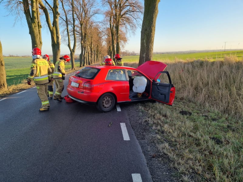 WYPADEK SAMOCHODU OSOBOWEGO W MIEJSCOWOŚCI MLECZEWO