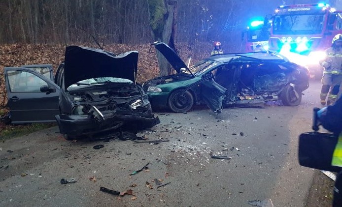 Zadysponowano zastęp z Jednostki Ratowniczo - Gaśniczej PSP ze Sztumu, dwa zastępy OSP KSRG Mikołajki Pomorskie, Policję dwa Zespoły Ratownictwa Medycznego. Po przybyciu na miejsce zdarzenia pierwszego zastępu straży pożarnej stwierdzono, że zderzyły się dwa auta osobowe, Audi i VW. Kierowca VG znajduje się poza pojazdem, natomiast kobieta kierująca Audi znajduje się wewnątrz pojazdu – zakleszczona, przytomna.