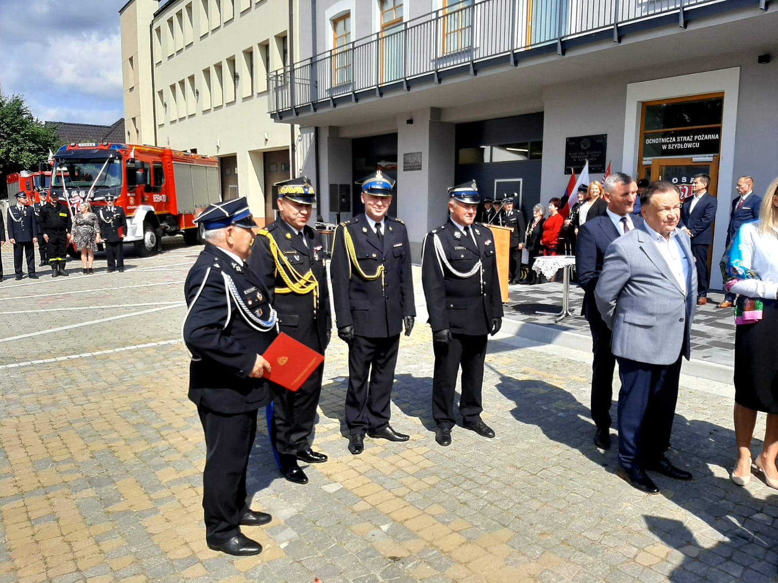 Po nabożeństwie uroczysty apel rozpoczął się na placu jednostki OSP Szydłowiec przy nowo zmodernizowanym budynku strażnicy.